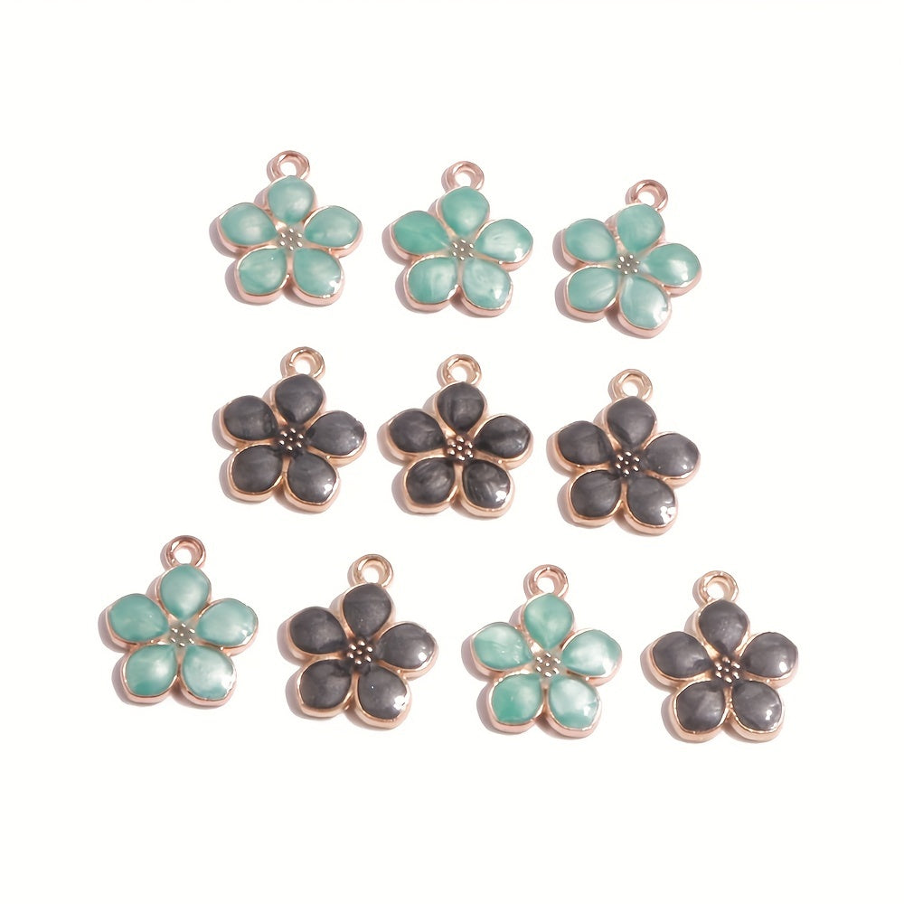 This set includes 10 zinc alloy flower drop oil pendants that can be used for creating bracelets or necklaces. The mixed design adds a unique touch to your jewelry making projects.