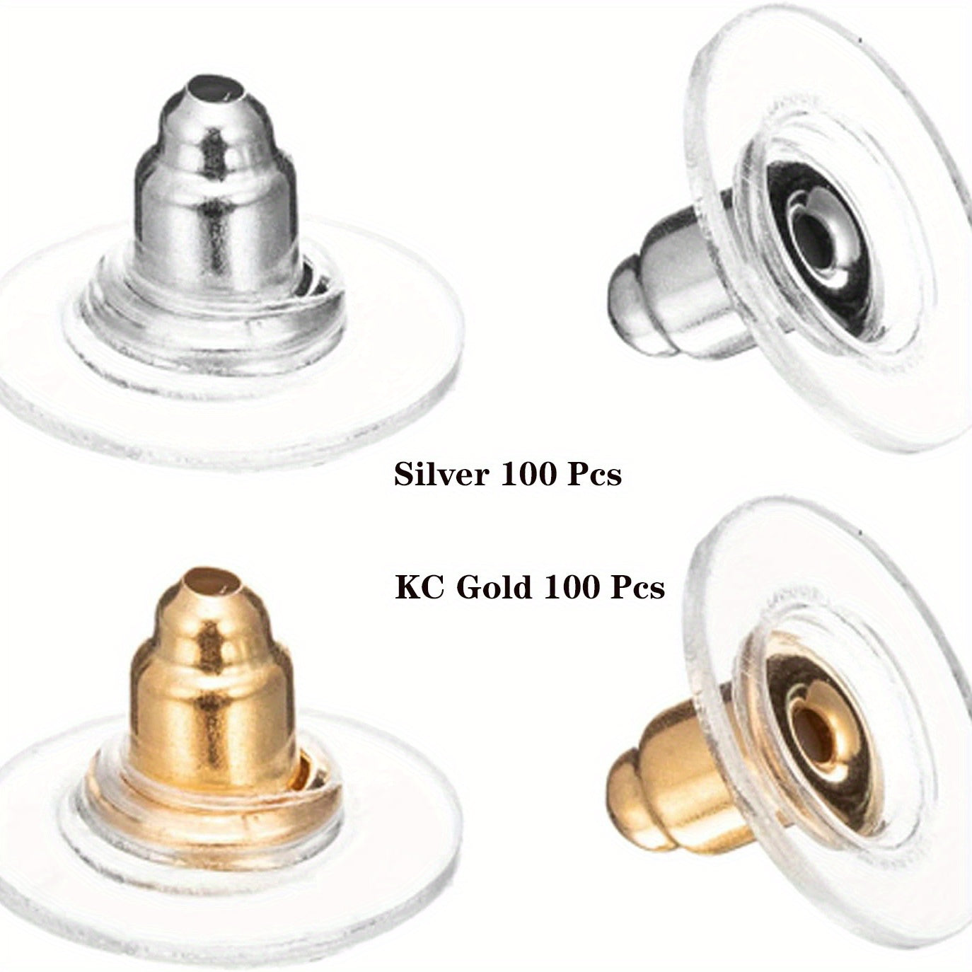 100 Pcs Locking Earring Backs KC Golden Silicone Ear Plugs