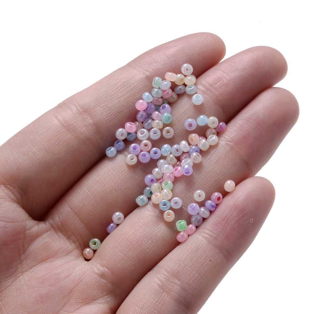 Get this pack of 1000 colorful 2mm milk bubble seed beads, ideal for DIY bracelet making and jewelry ornament. These dreamy glass spacer beads are perfect for various crafting projects.