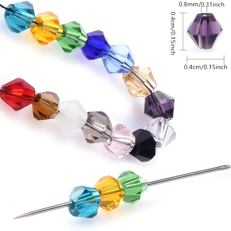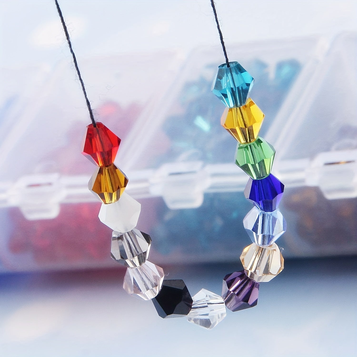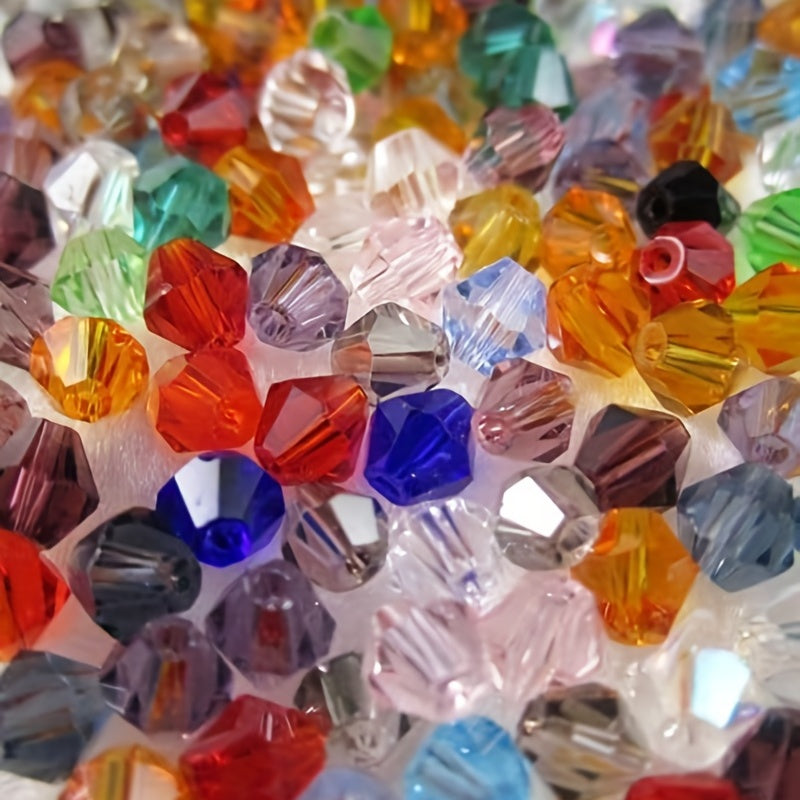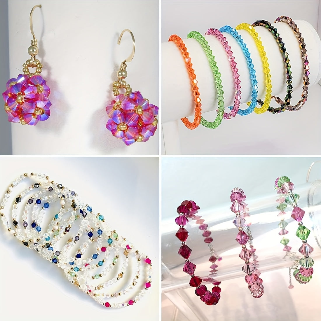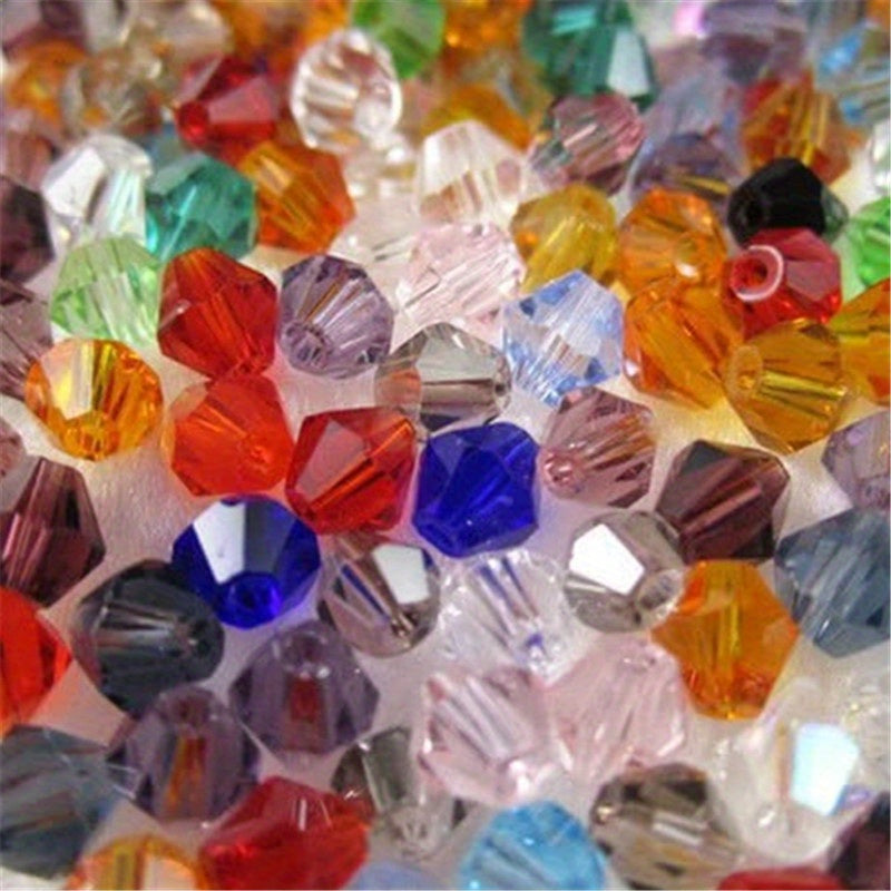Create stunning DIY jewelry with this set of 1000 colorful 4mm faceted double cone crystal glass beads. Perfect for making earrings, bracelets, necklaces, and more.