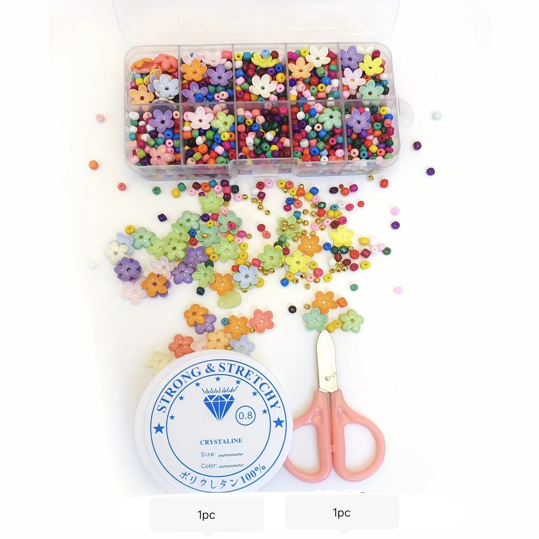 Create stunning jewelry with this set of 1000 colorful acrylic rice beads or flower beads. The kit includes tools for bracelet, necklace, ring, and ear jewelry making. Comes in a convenient case box.