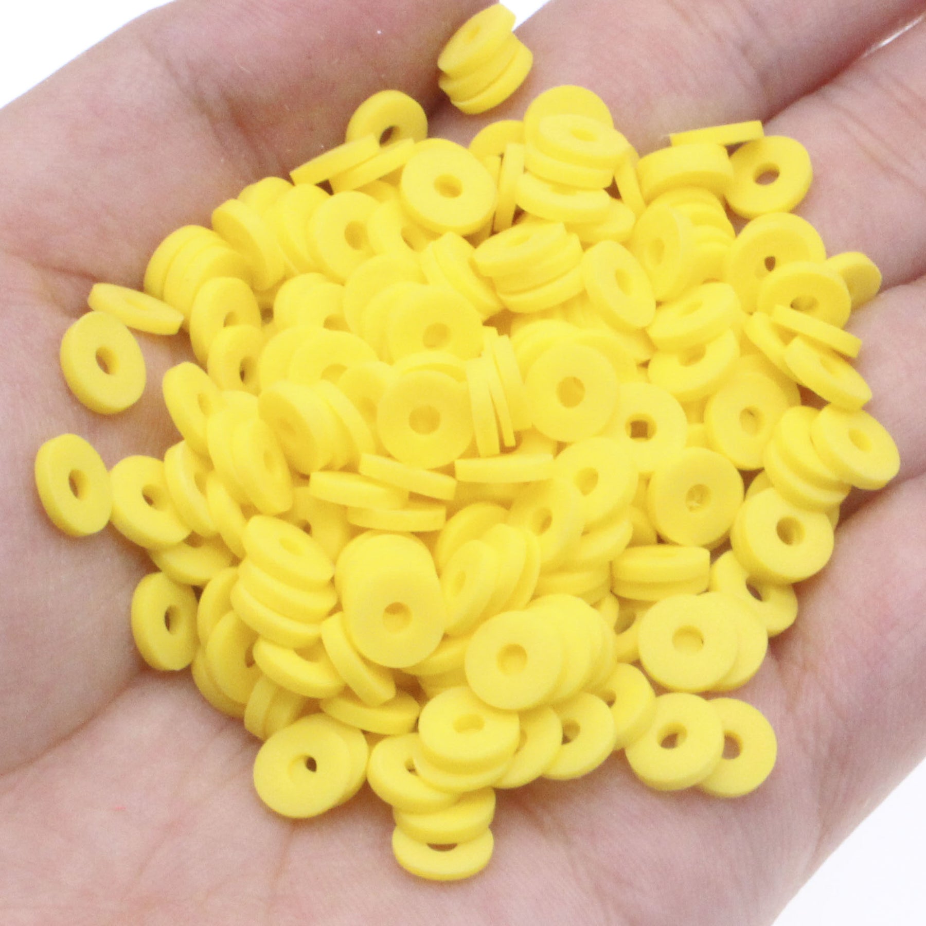 Create your own unique bracelets with these flat round chip disk beads. Made of high-quality polymer resin clay, these spacer beads are perfect for jewelry making.