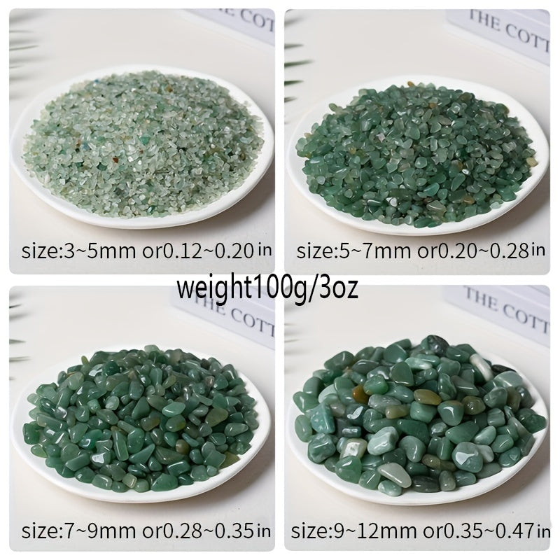 Bring the calming energy of natural Aventurine Jade into your space with this 100g pack of polished gravel. Perfect for decoration, crafts, or crystal healing.