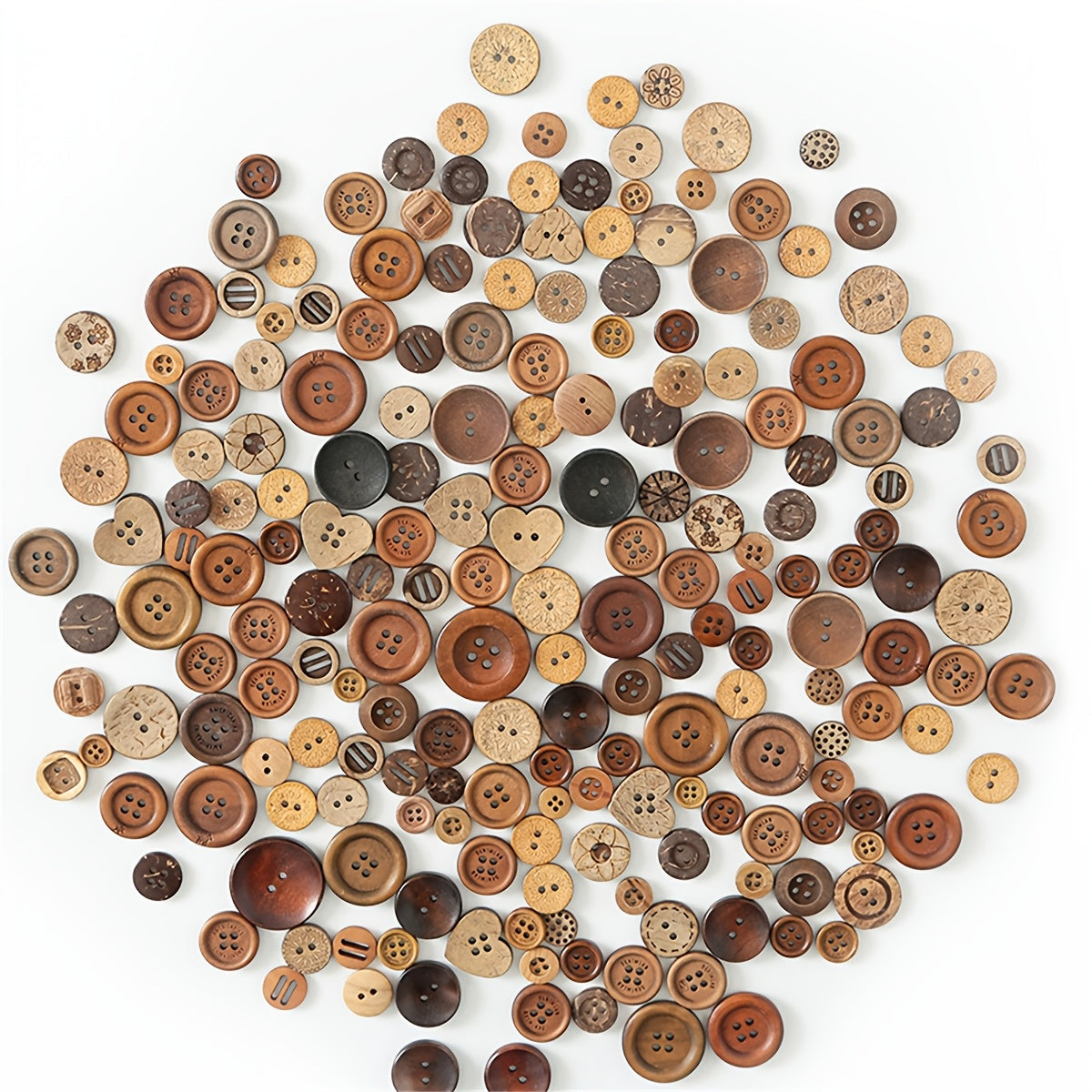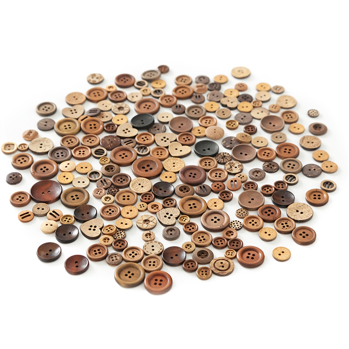 100g Mixed Wood & Coconut Buttons DIY Craft Supplies
