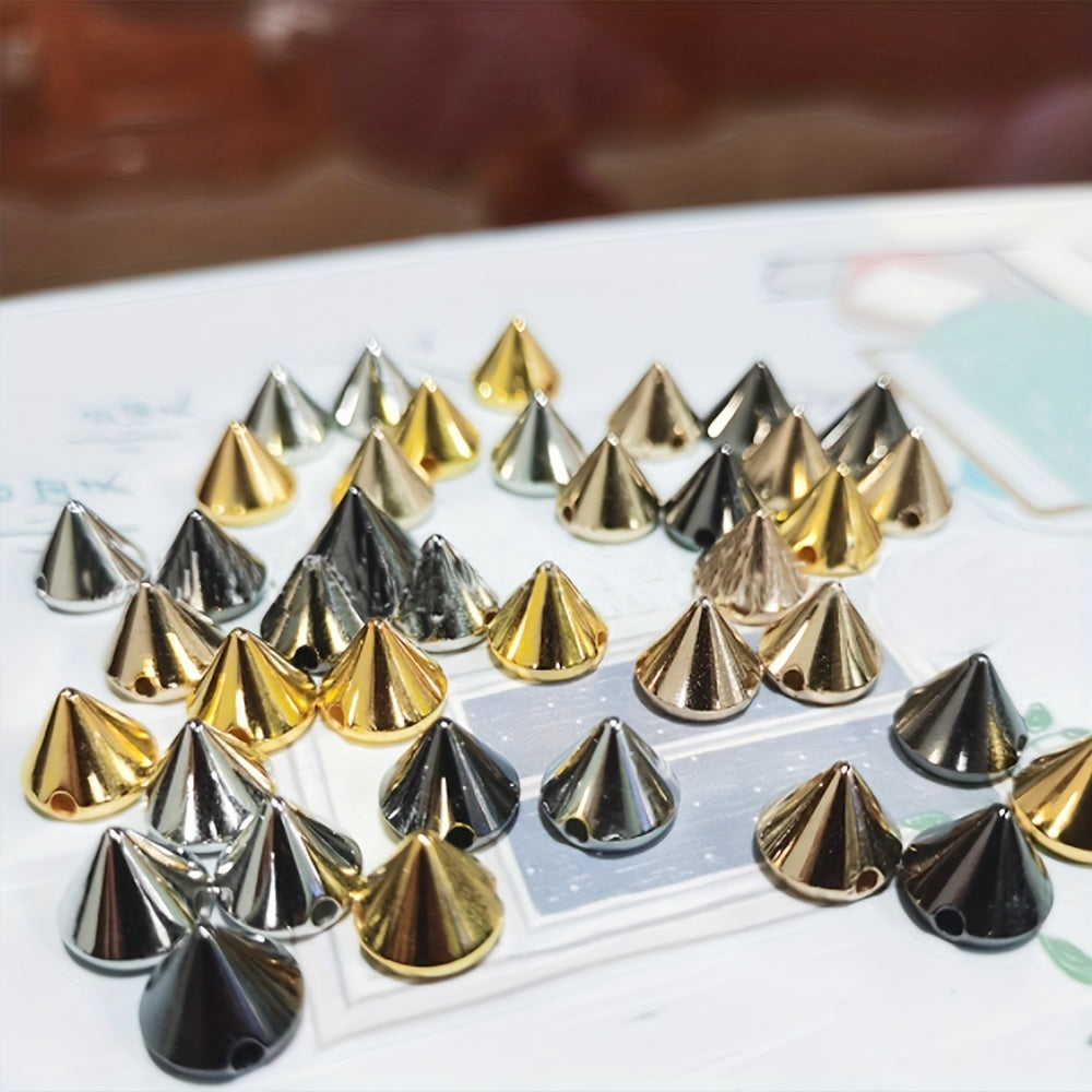 Get a pack of 100 punk style acrylic bullet spike cones with holes for your DIY jewelry and clothing projects. These versatile pieces add edgy flair to your creations.