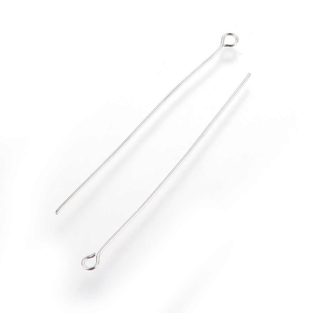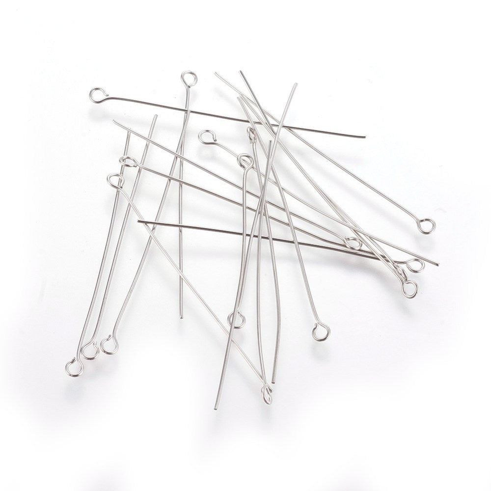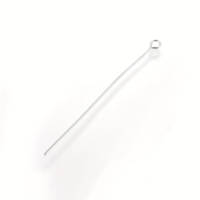 This pack includes 100 high-quality stainless steel eye pins, perfect for crafting jewelry. The 0.6mm thickness ensures durability and reliability for your projects.