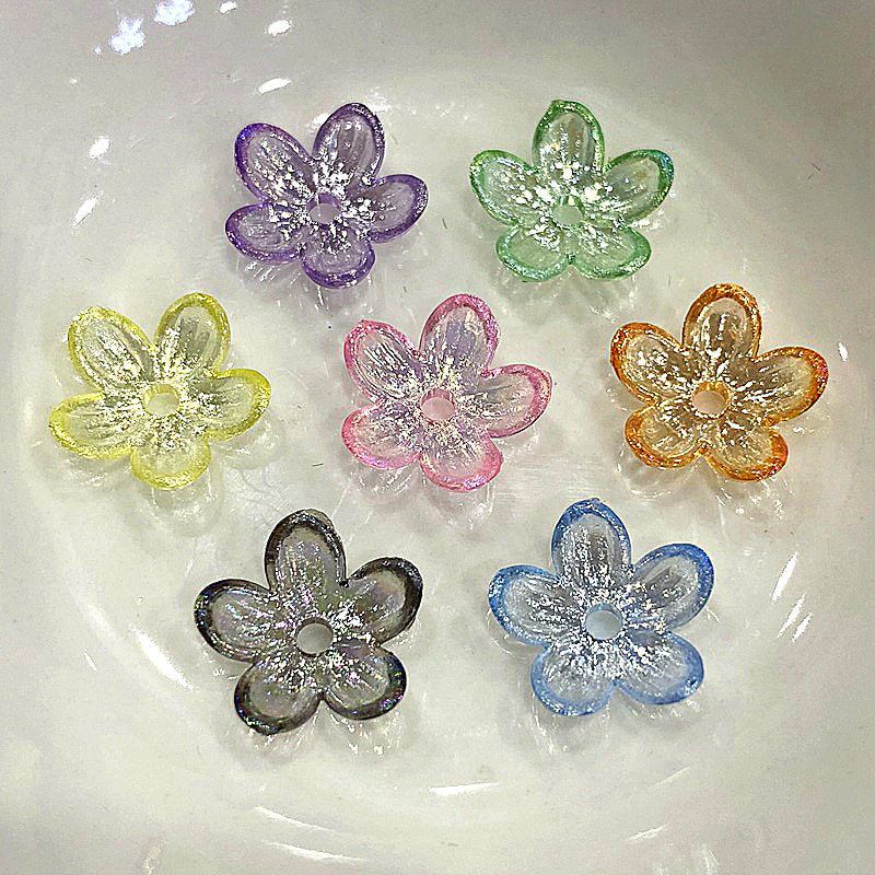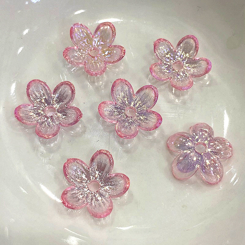 100PCS 1.0in Plated Five Petals Ab Laser Effect Beads