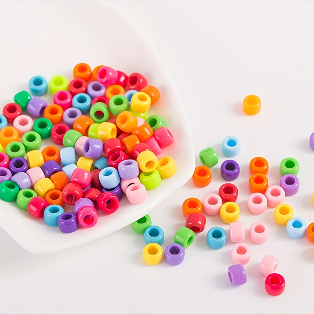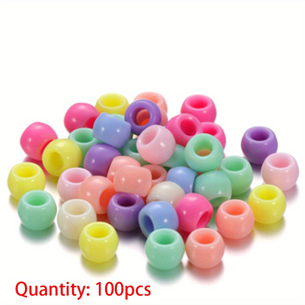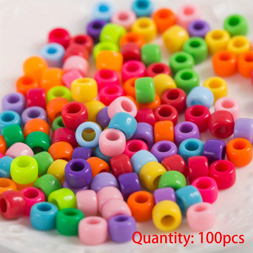 This pack includes 100 pieces of 24-inch mini acrylic column tube pony beads in a mix of colors. Perfect for various crafting projects.