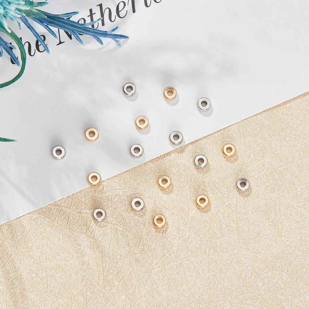 100pcs 4mm Flat Round Spacer Beads Stainless Steel Golden & Stainless Steel