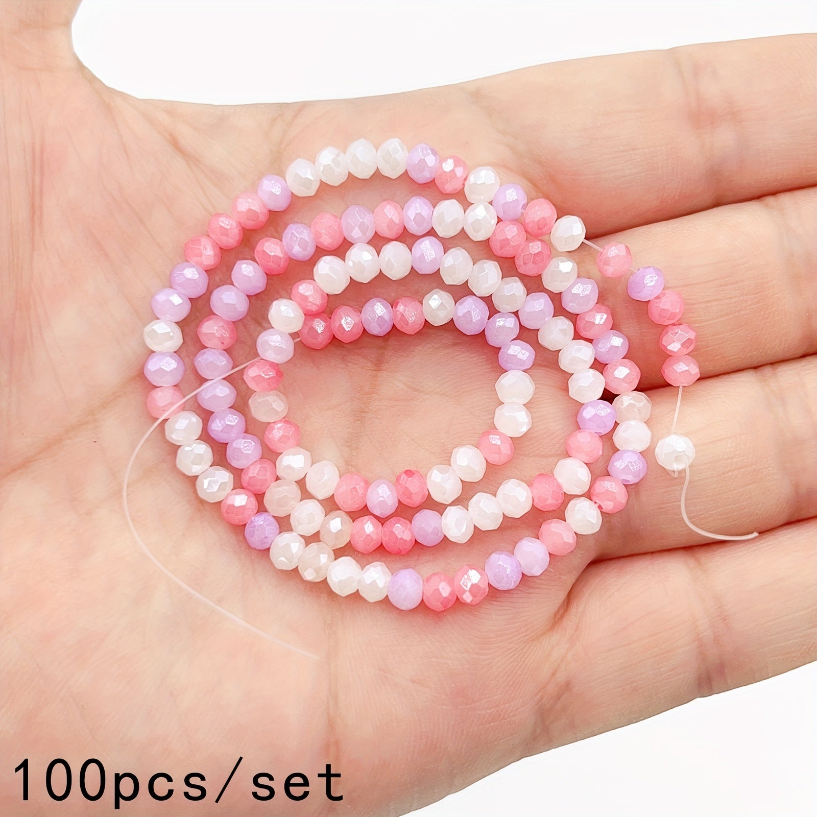 Get a set of 100 4mm pink and mixed faceted glass beads, perfect for DIY jewelry making. These loose beads are ideal spacer beads for creating unique accessories.