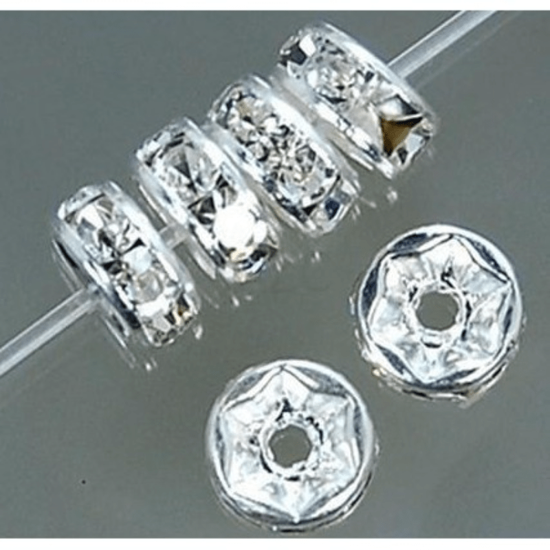 100pcs 6-10MM Silver Plated Rondelle Rhinestone Beads