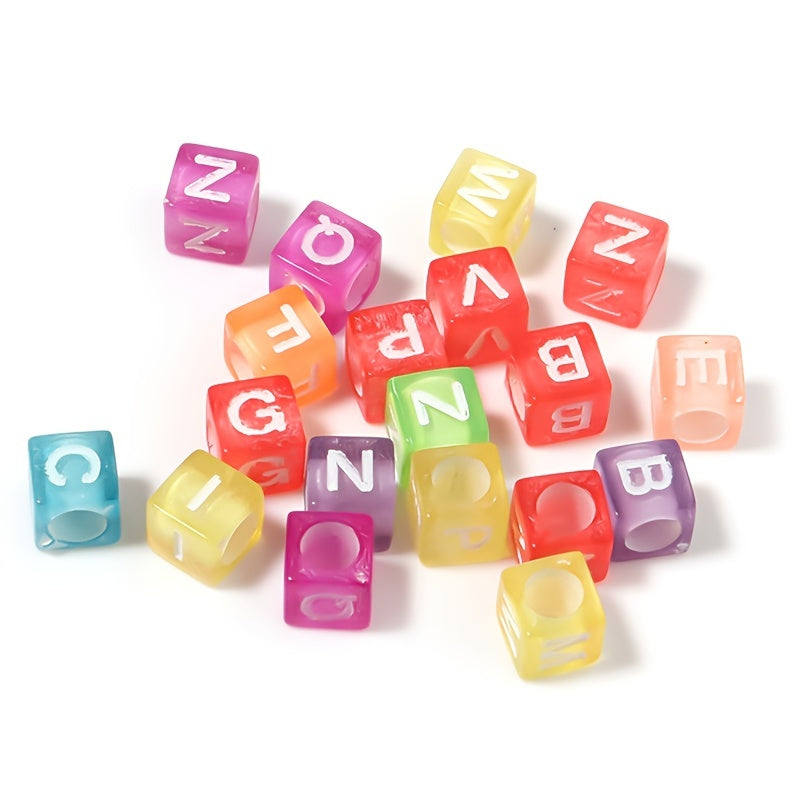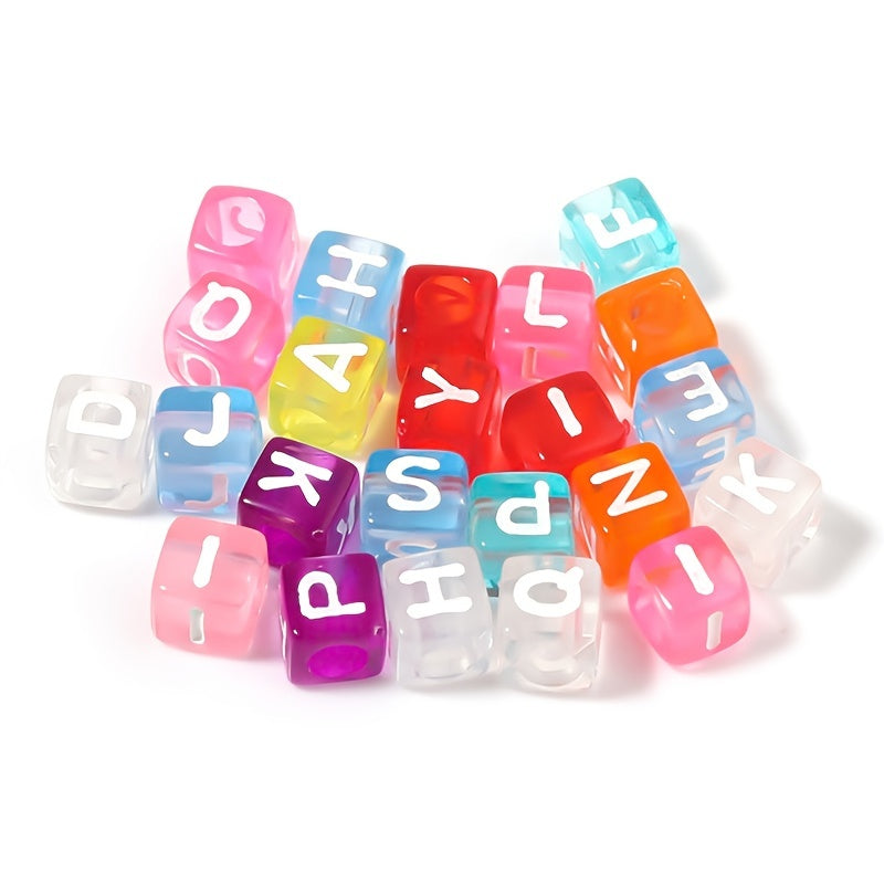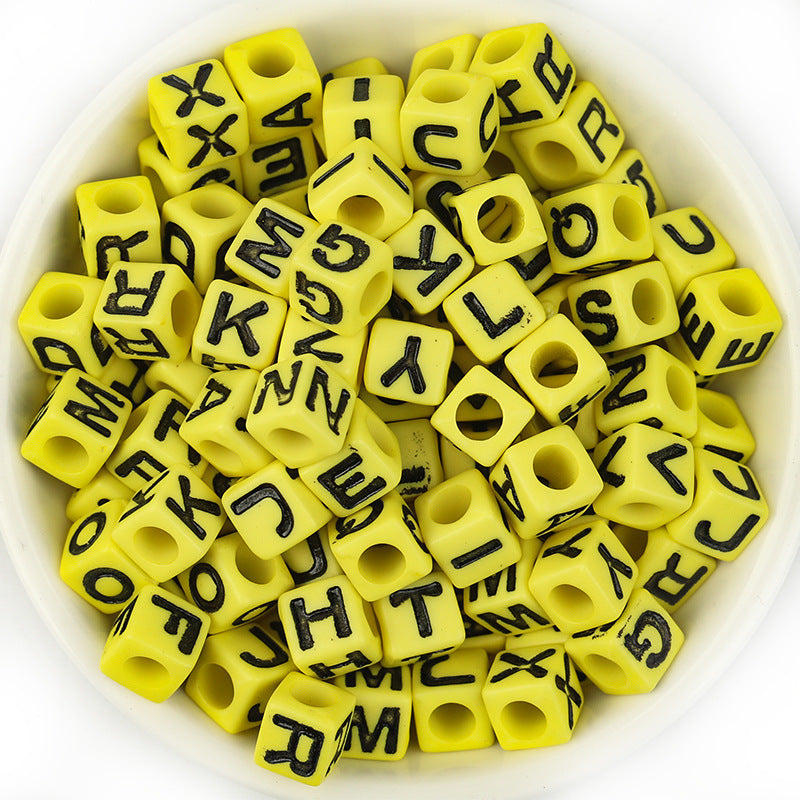 100pcs 6mm Acrylic Square Letter Beads Colorful Large Hole Beads DIY Beading