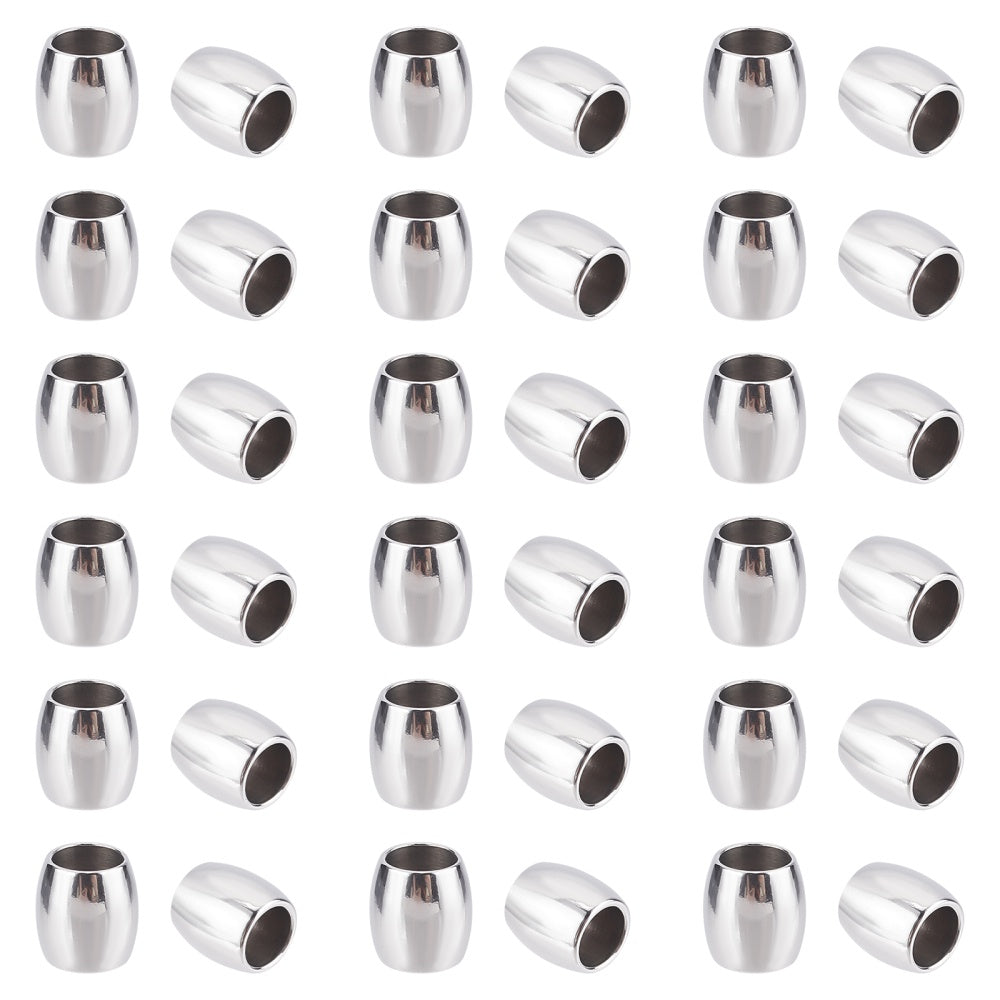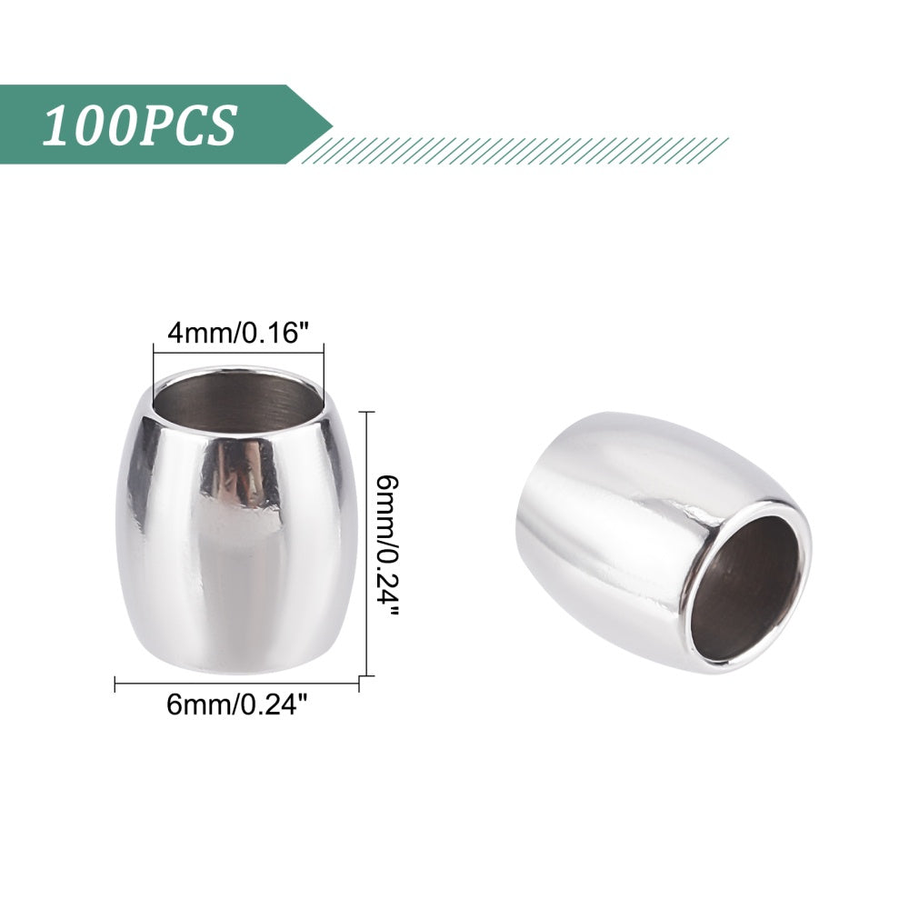 100pcs 6mm Barrel Spacer Beads Stainless Steel Metal Smooth Surface DIY Bracelet