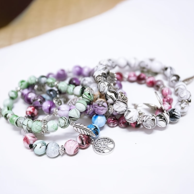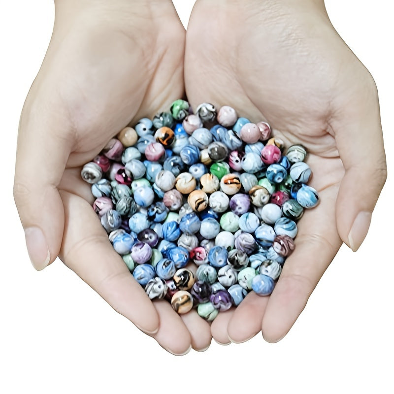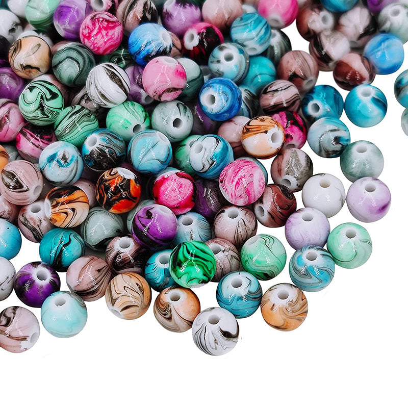 These acrylic round loose beads with ink patterns are perfect for creating bracelets, necklaces, and other accessories. Each bead measures 8mm (0.314in) and can be easily used for various jewelry making projects.