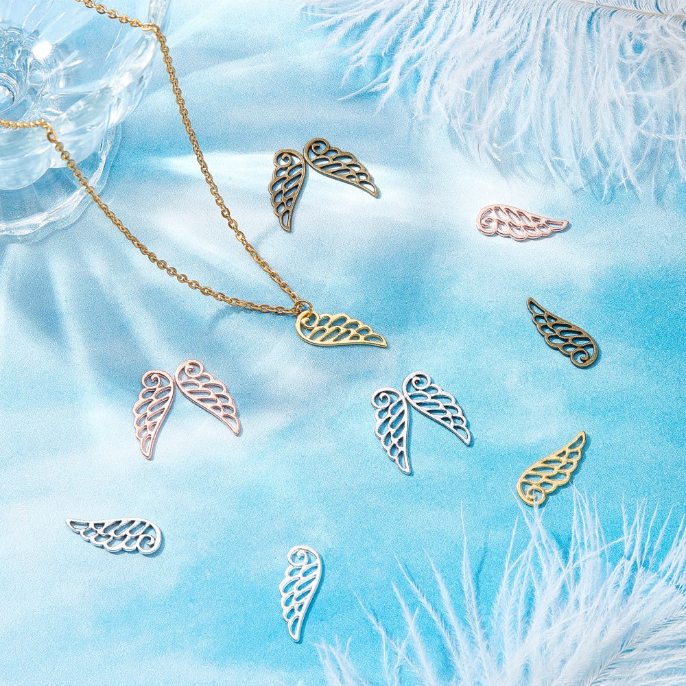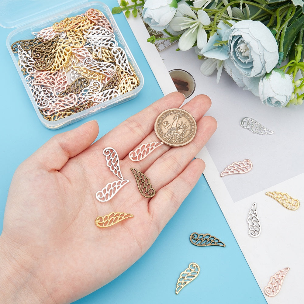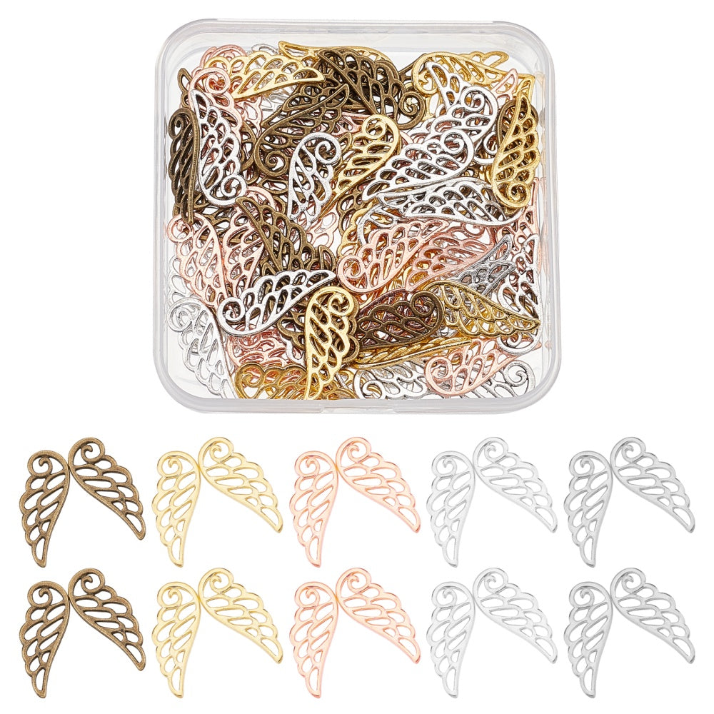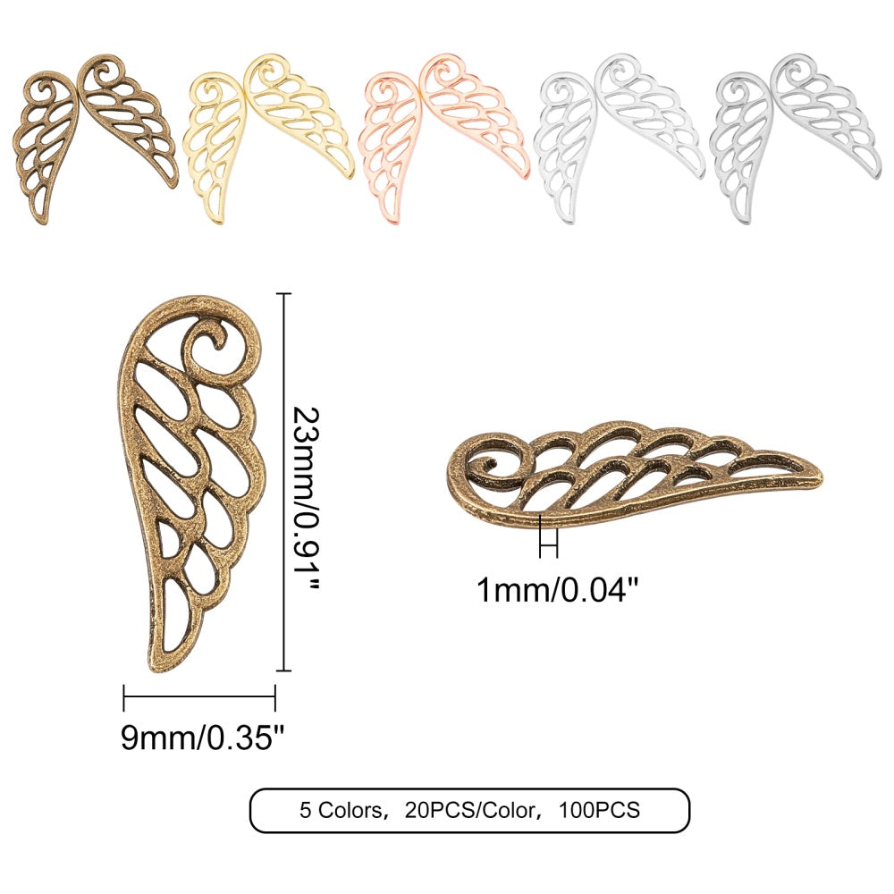 Get this pack of 100 alloy angel wings charms in 5 colors for your DIY jewelry projects. Use them to create stunning necklaces and bracelets!