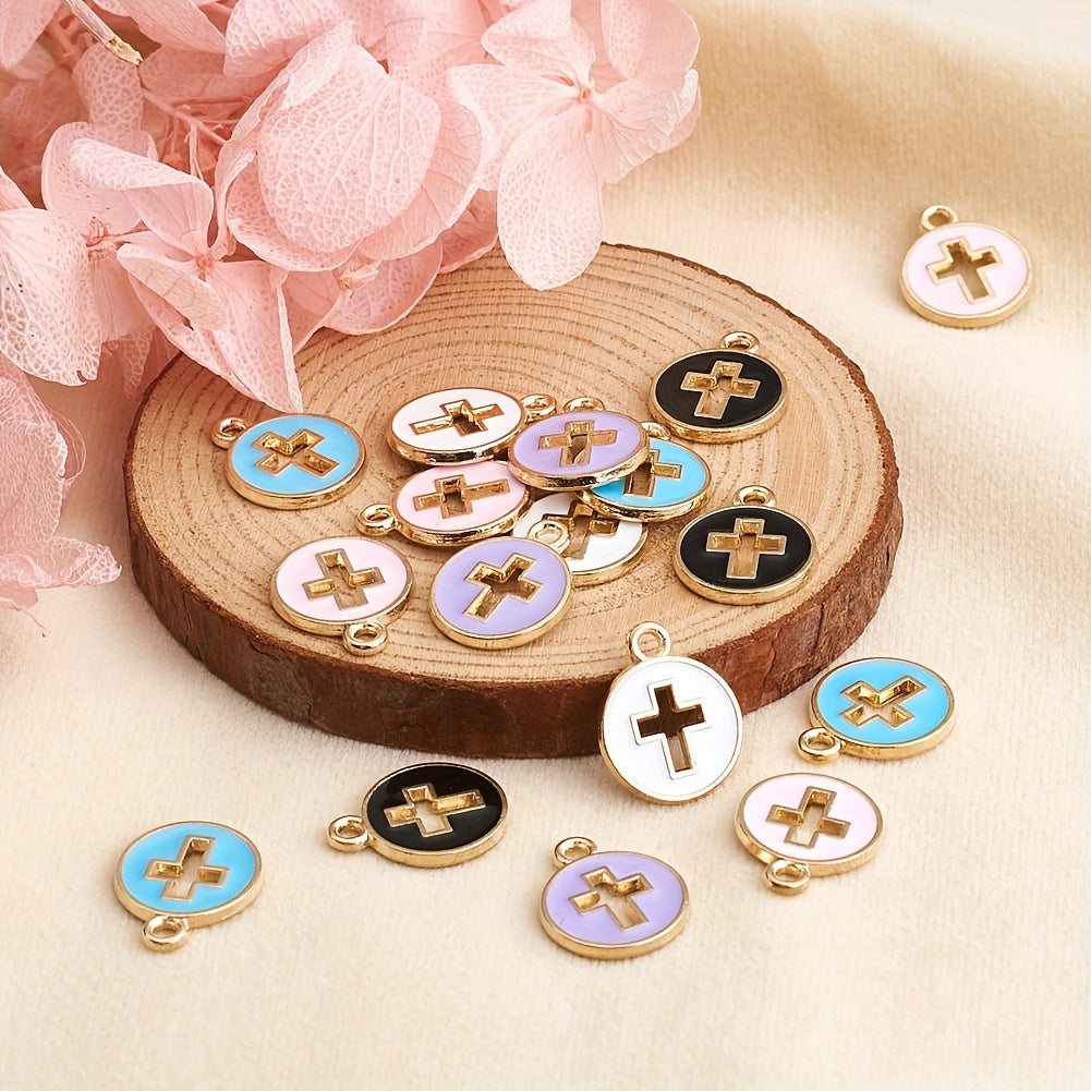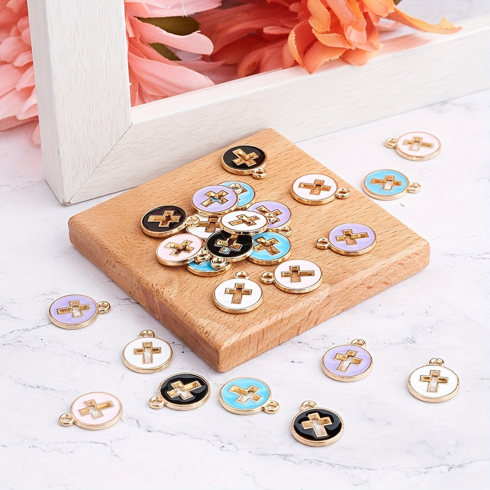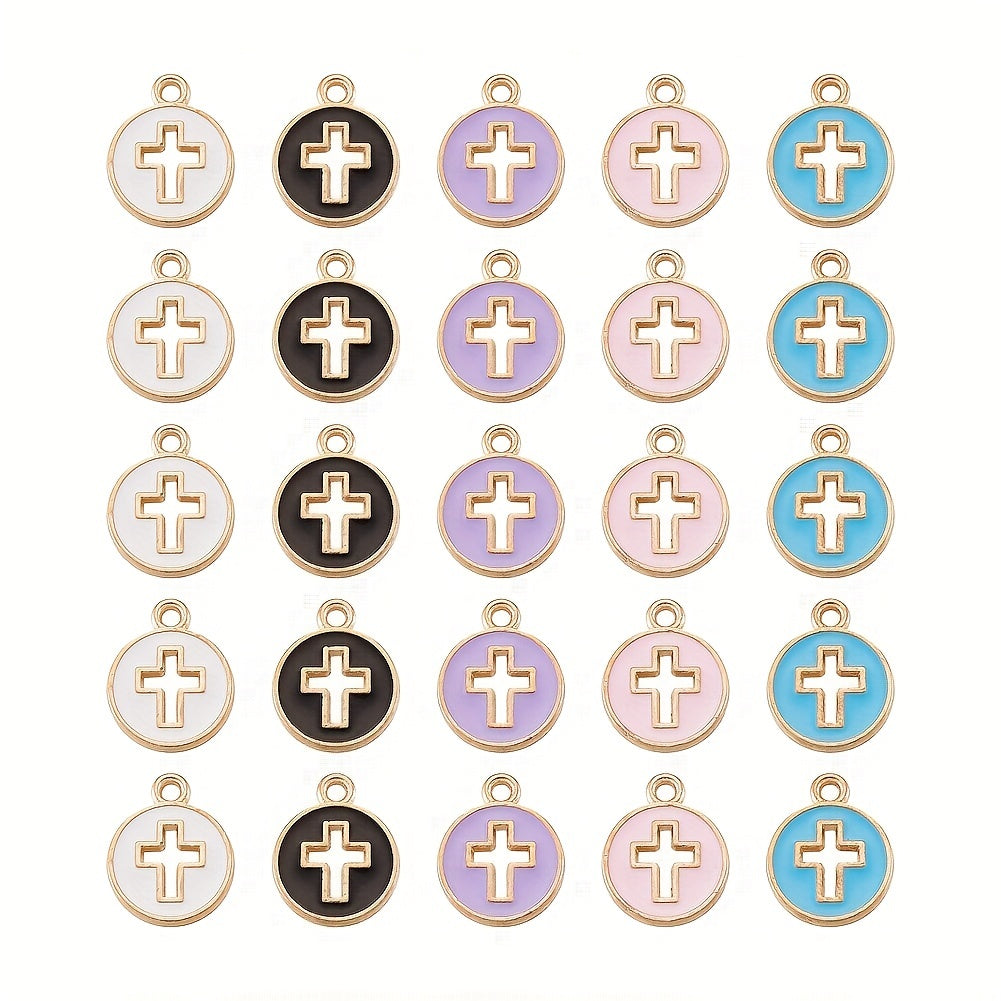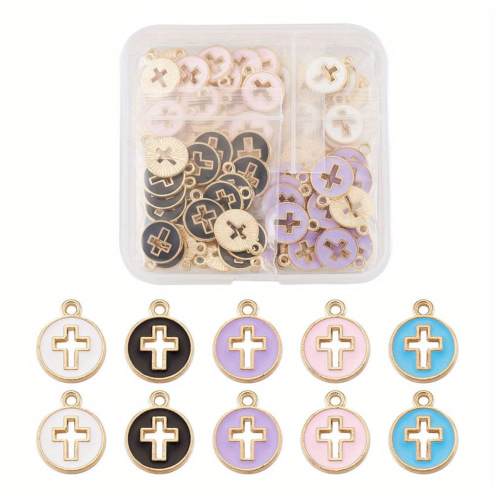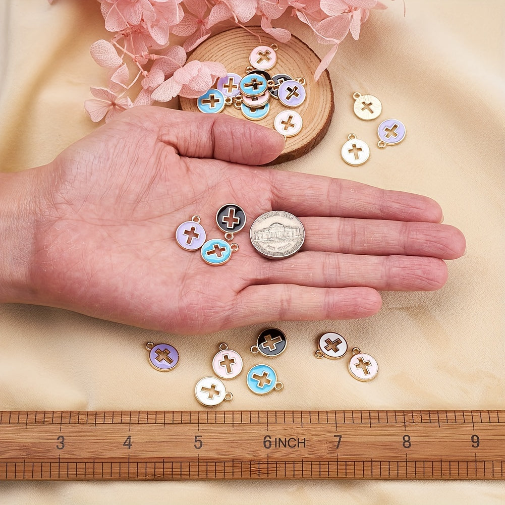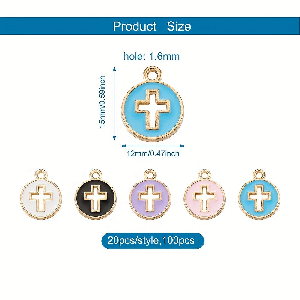 100pcs Alloy Enamel Cross Charms for DIY Jewelry Flat Round Mixed Hole 20pcs
