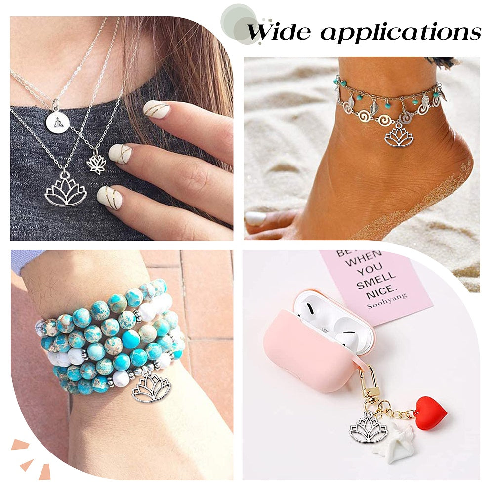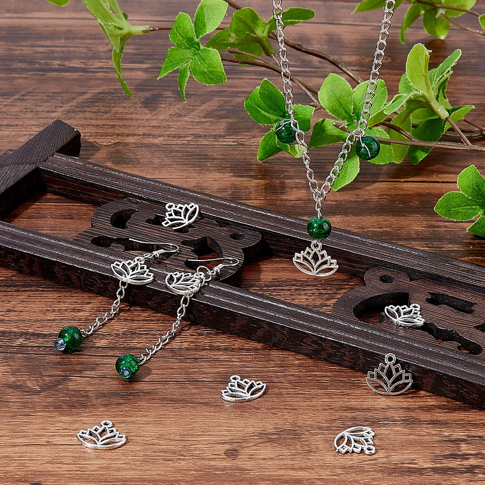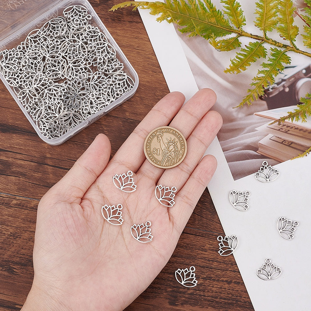 Create beautiful earrings, necklaces, bracelets and more with these lotus flower pendants. Made of high-quality alloy, these silver charms are perfect for your DIY crafts and jewelry projects.