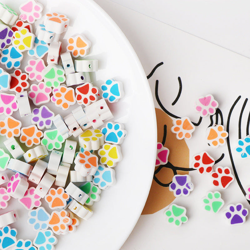 100pcs Colorful Animal Paw Clay Pearls