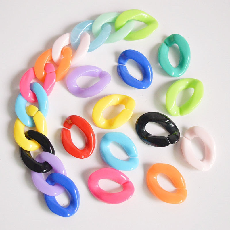 This pack contains 100 colorful plastic chain bag buckles that can be used as open clips or hooks for various purposes. They are made of durable acrylic material.