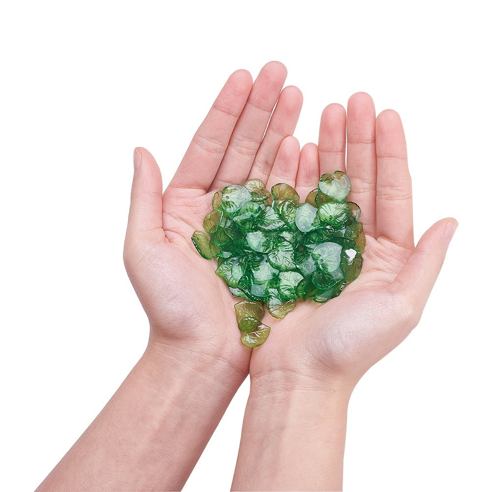 Enhance your jewelry making projects with this set of 100 green acrylic leaf pendants. Perfect for adding a touch of nature-inspired beauty to your designs.