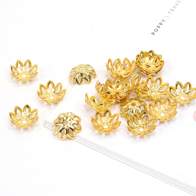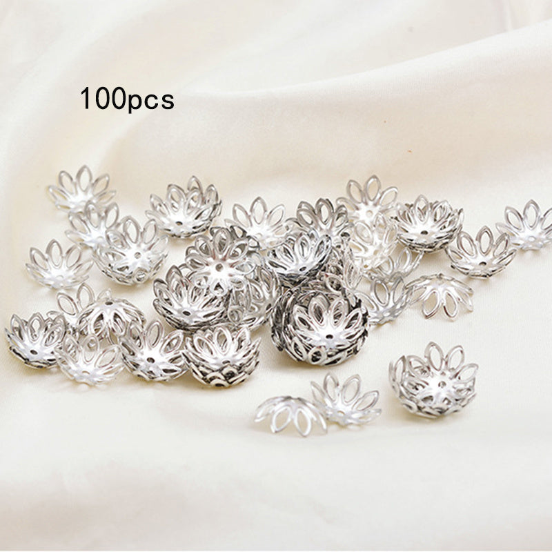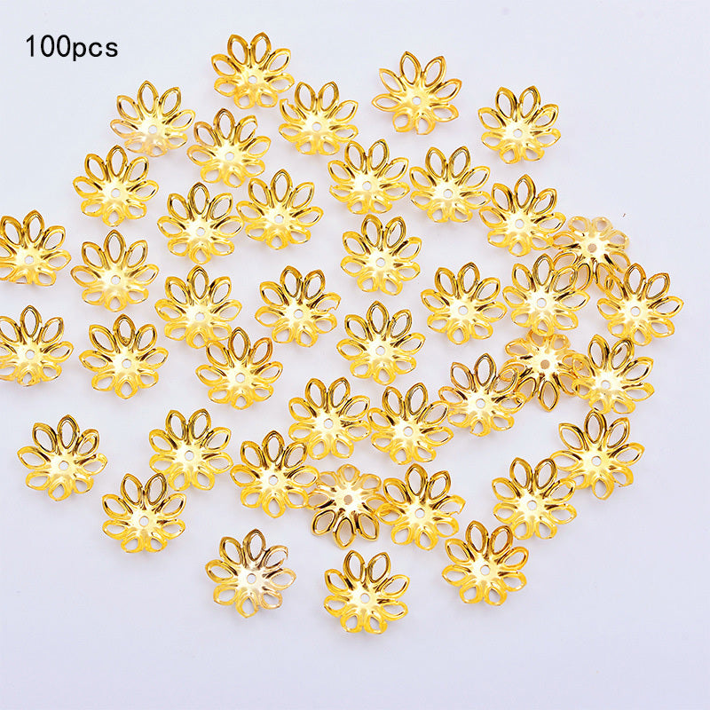 This set includes 100 metal hollow eight leaf flower holders that are perfect for DIY jewelry finding and making projects.