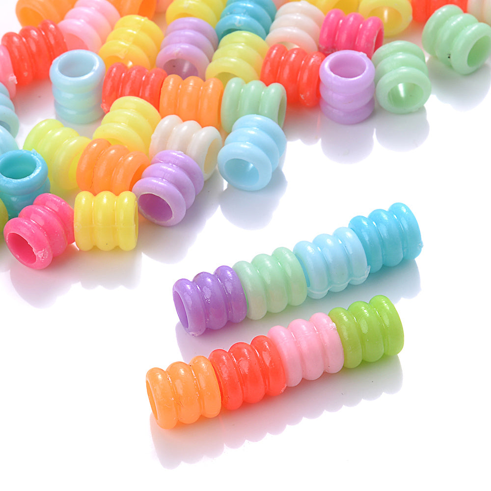 Get this bag of 100 Mix Tube Acrylic Beads perfect for creating your own unique bracelets, necklaces, and keychains. These big hole plastic spacer beads offer endless design possibilities.