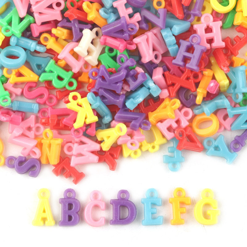 Get this set of 100 plastic letter beads with suspended 3D English letter pendants to create unique jewelry pieces. Perfect for DIY projects and crafting.