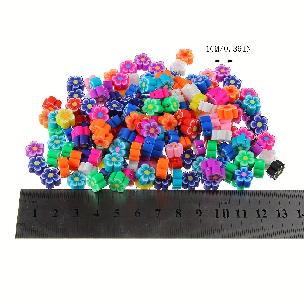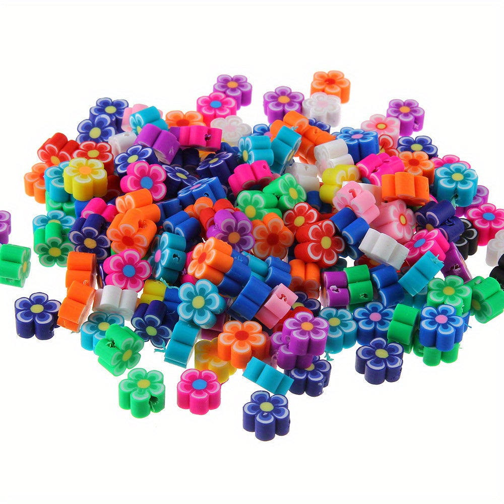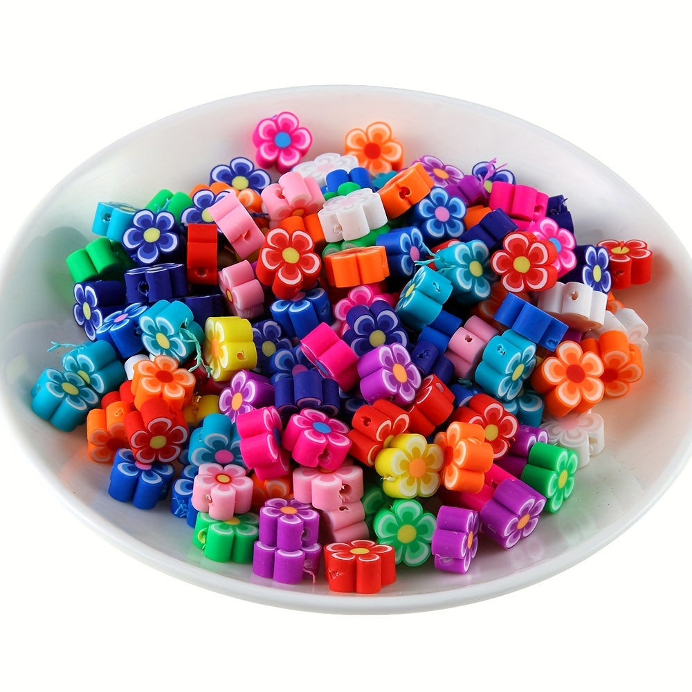 Create beautiful bracelets, necklaces, and hair accessories with this set of 100 flat flower-shaped polymer clay spacer beads. Perfect for DIY projects!