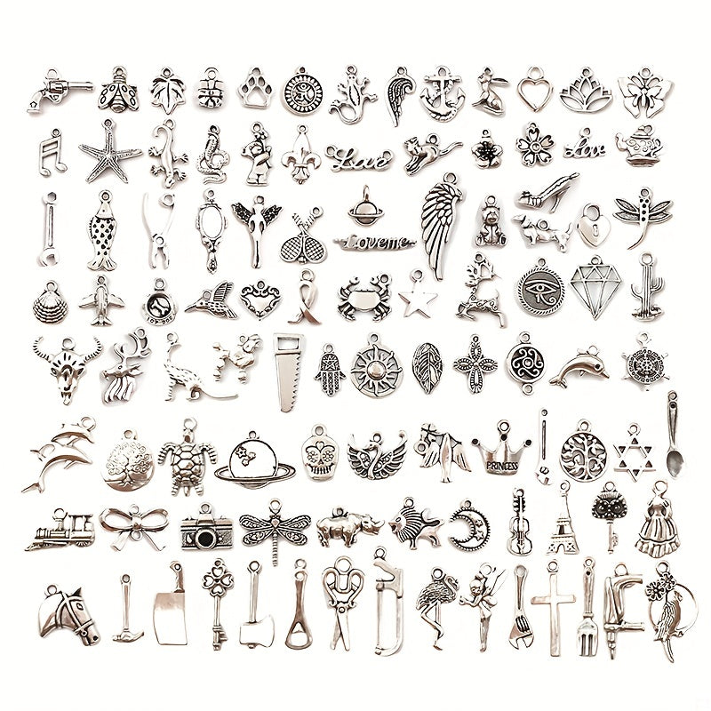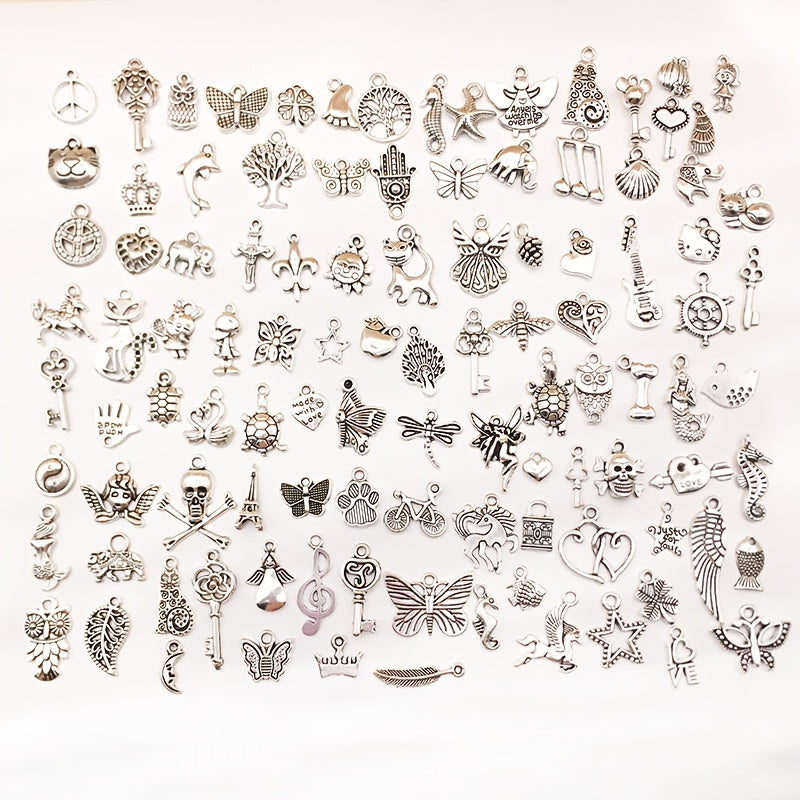 100pcs Mixed Silver Alloy Metal Pendants for DIY Jewelry Making Kits