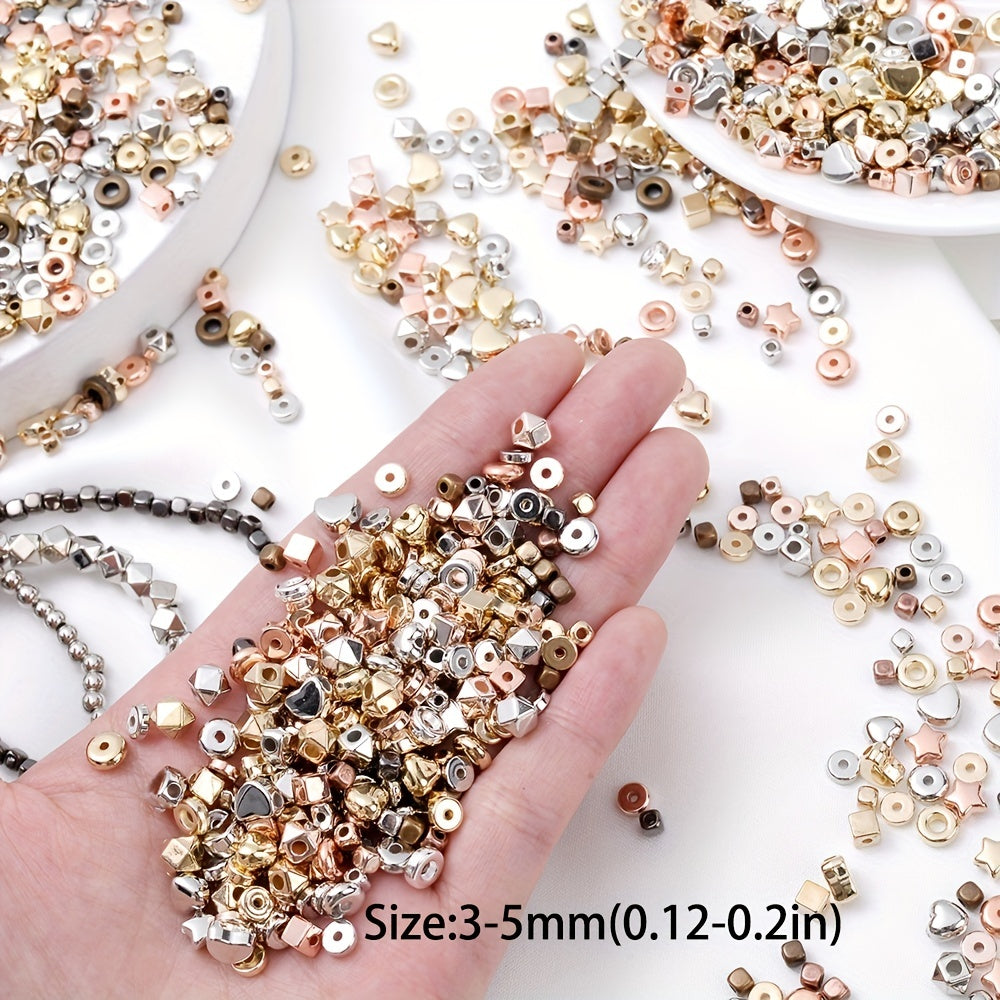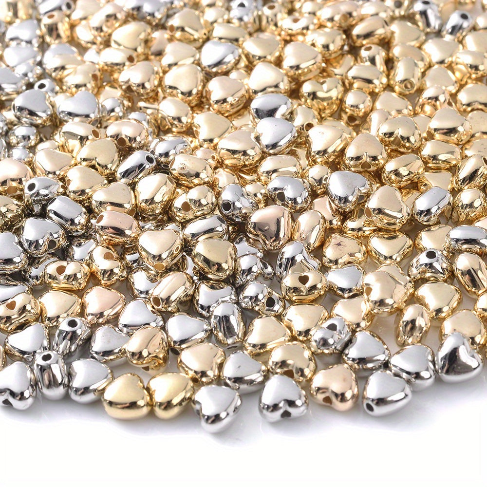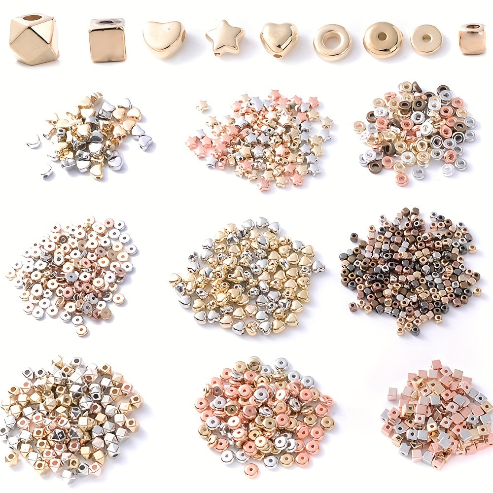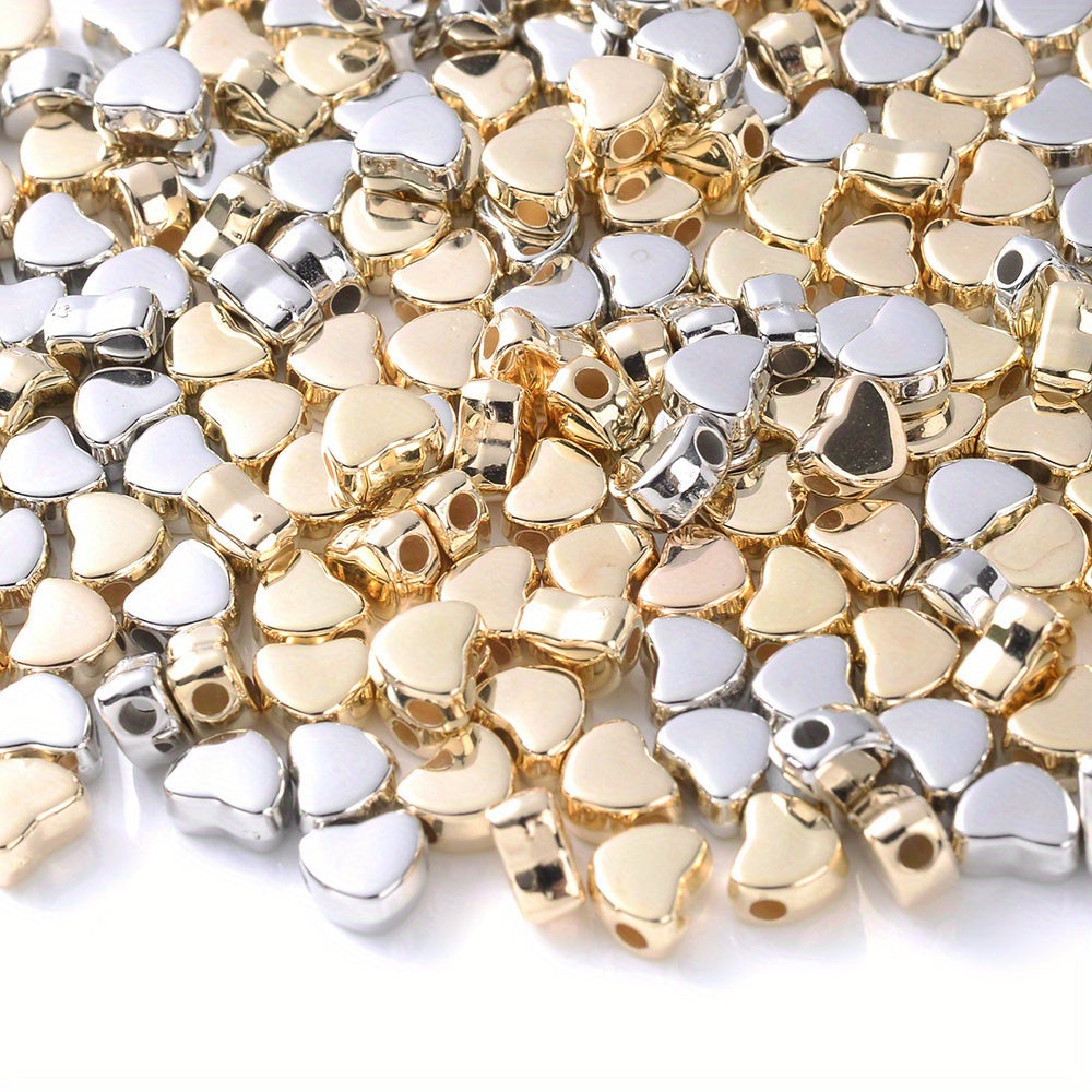 Explore your creativity with this set of 100 mixed style colorful golden, silver heart, star, and circle loose beads. Perfect for jewelry making and various art and craft projects.