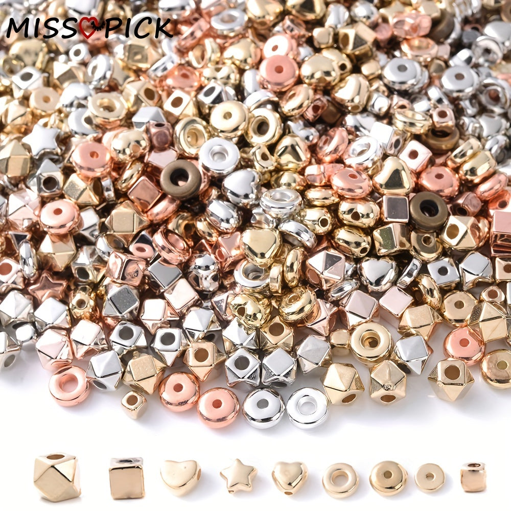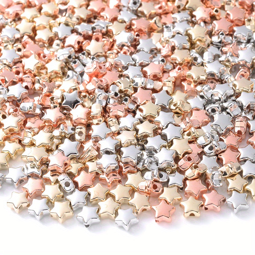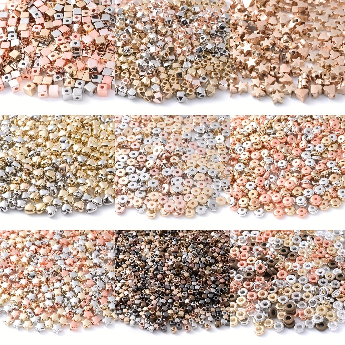 Explore your creativity with this set of 100 mixed style colorful golden, silver heart, star, and circle loose beads. Perfect for jewelry making and various art and craft projects.