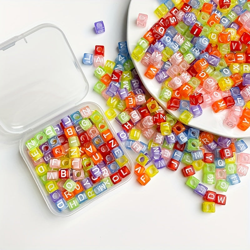 100pcs Mixed Transparent Square Alphabet Letter Beads Charms for Jewelry Making