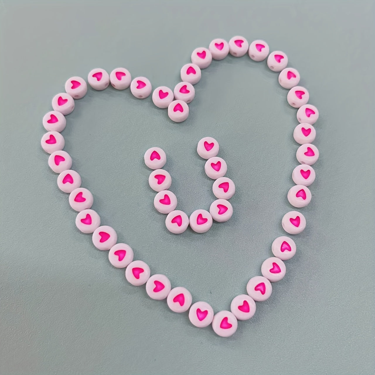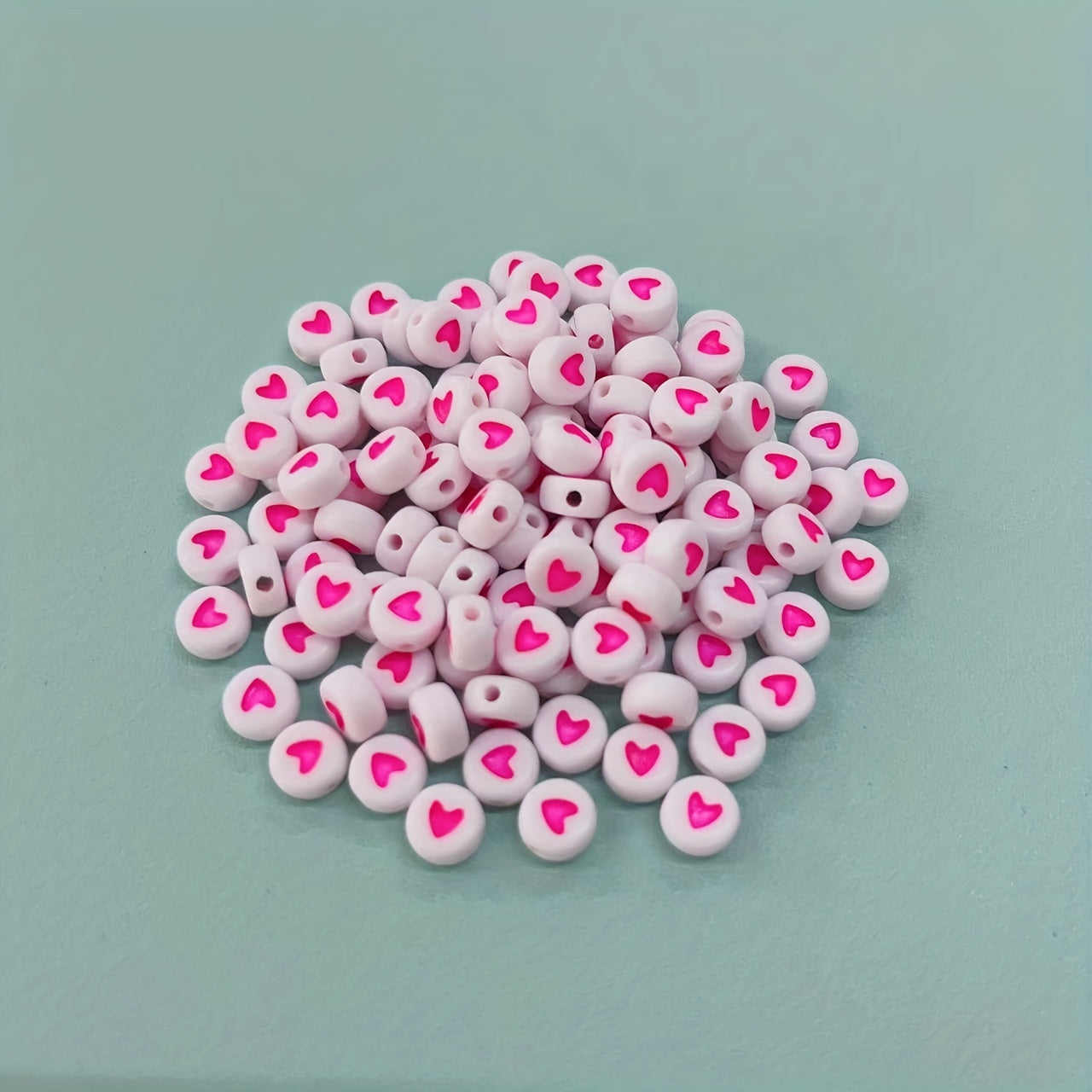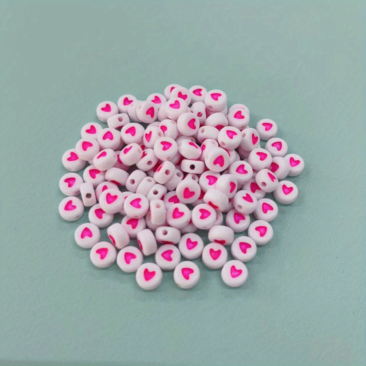 100pcs Pink Heart Decor Flat Round Beads DIY Earrings Bracelet Necklace