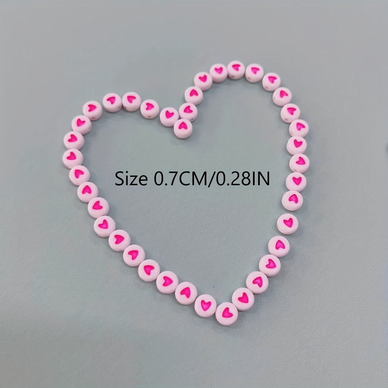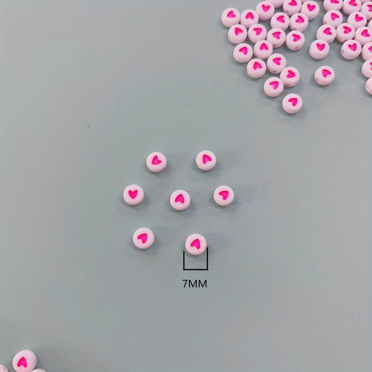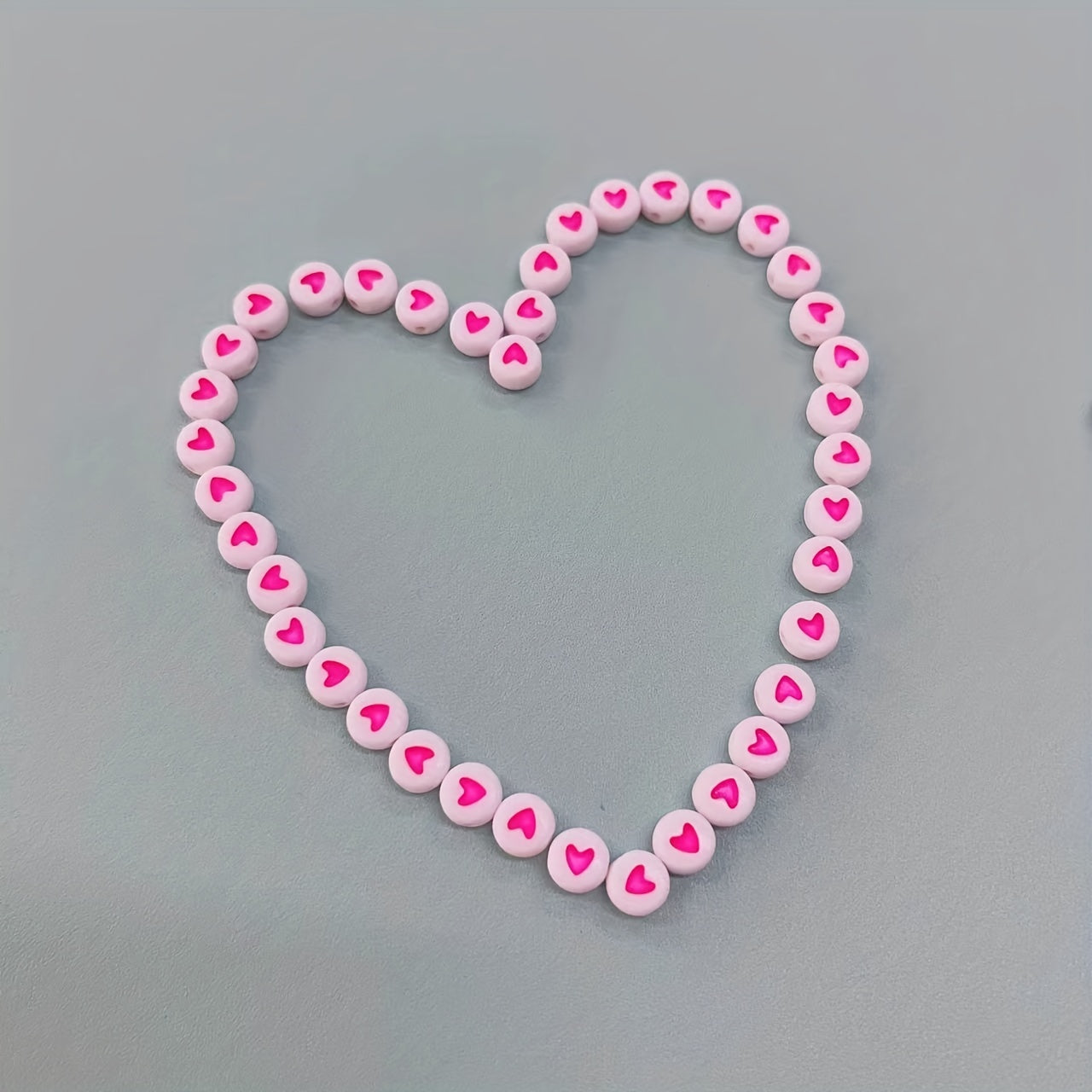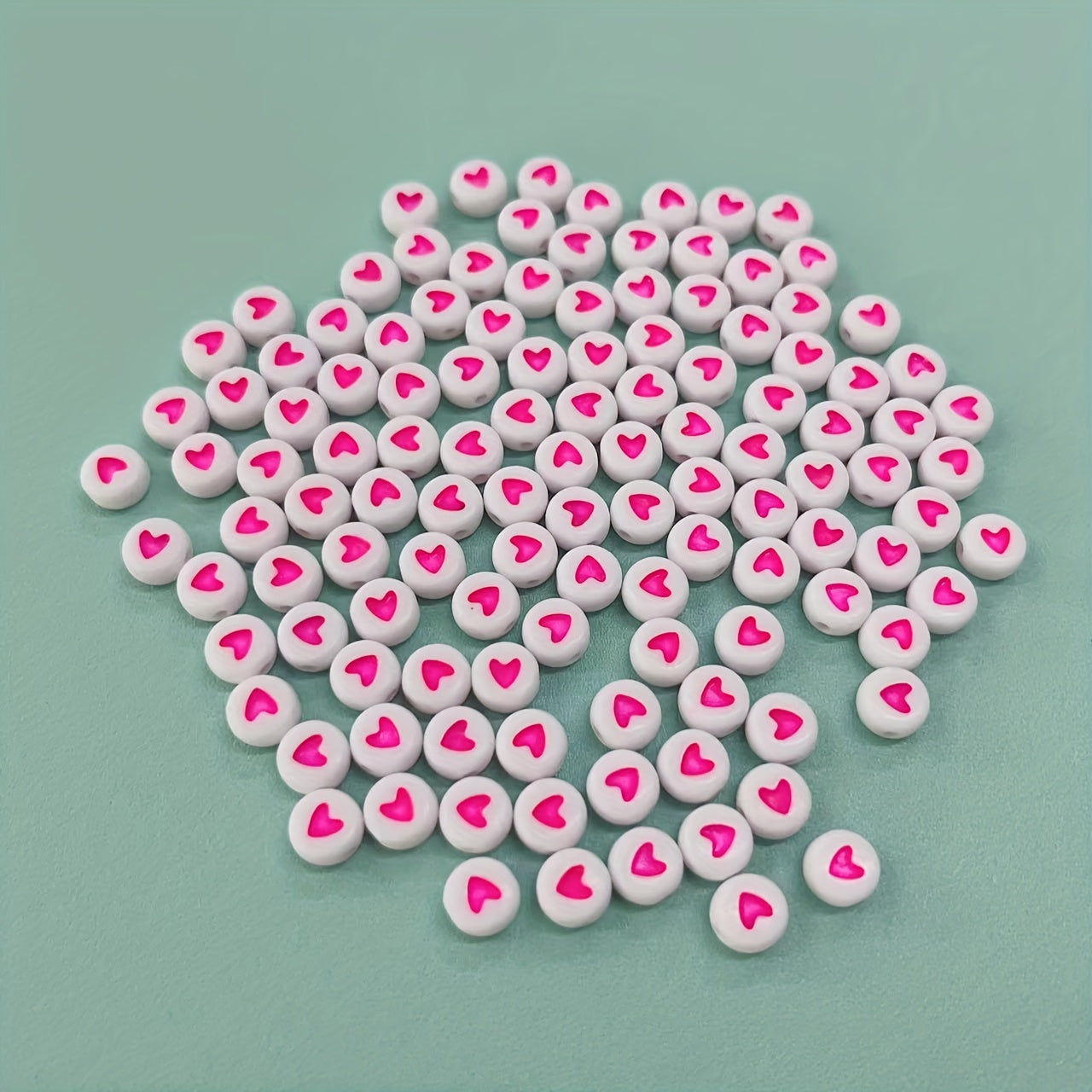 100pcs Pink Heart Decor Flat Round Beads DIY Earrings Bracelet Necklace