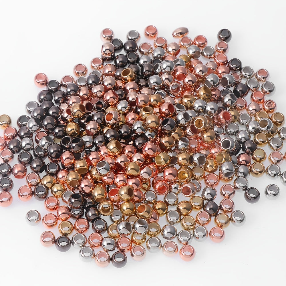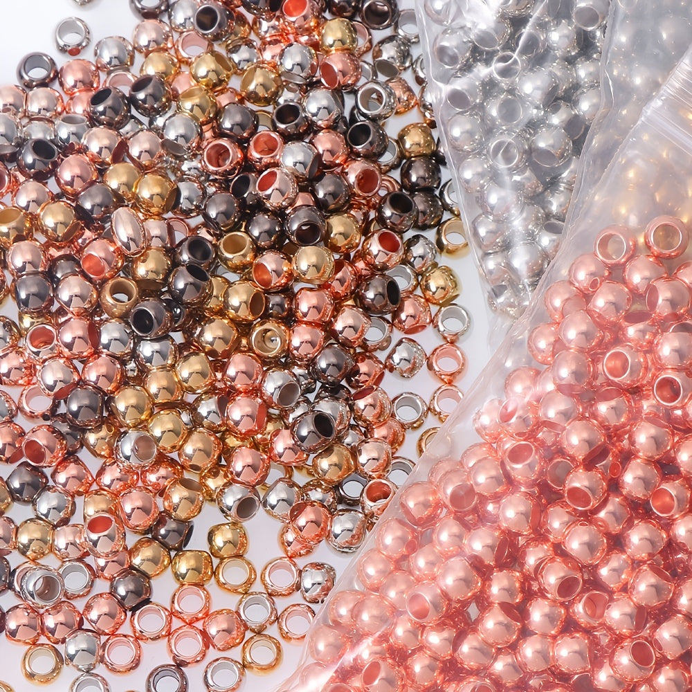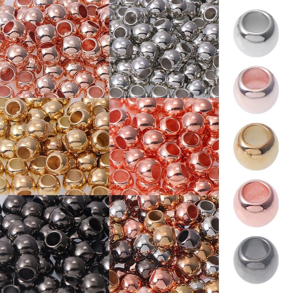 100pcs Plastic Plating Glossy Round Beads Large Hole Jewelry Accessories