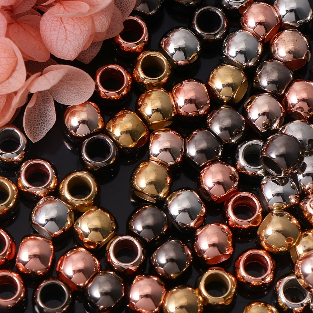 Enhance your jewelry creations with this set of 100 plastic plating glossy round beads. These beads have a large hole for easy stringing and are perfect for various jewelry projects.