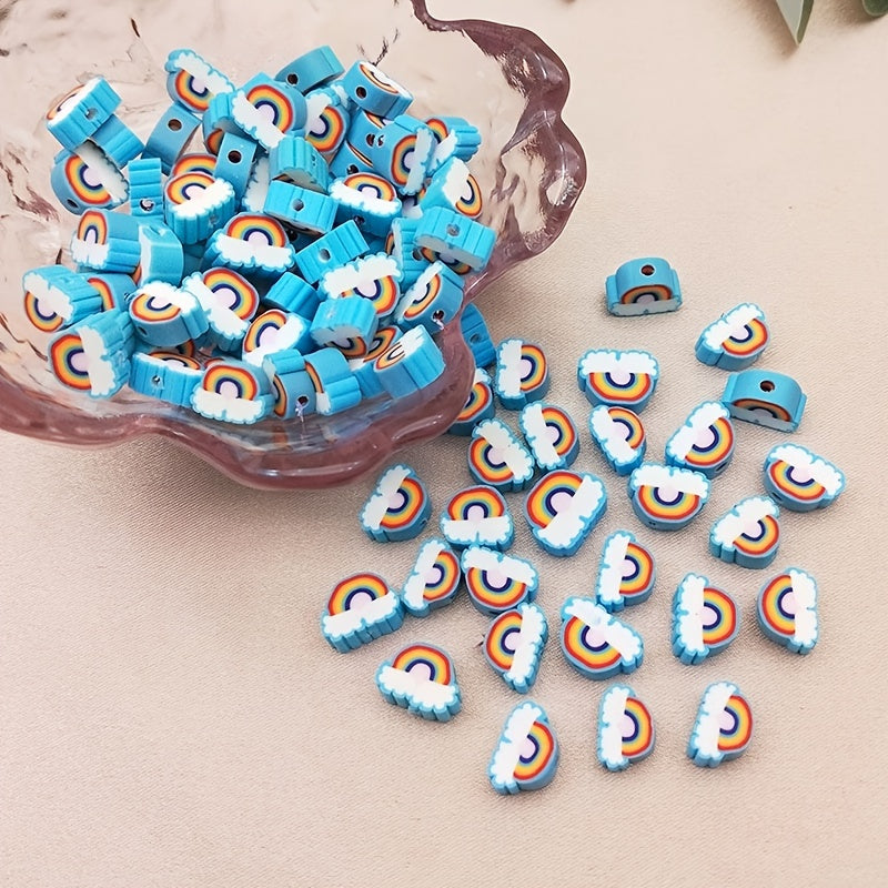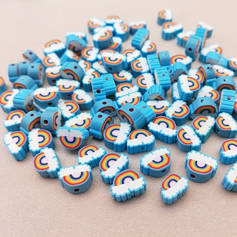 Create stunning jewelry pieces with this set of 100 rainbow polymer clay spacer beads. Perfect for bracelets, necklaces, and hair clip accessories.