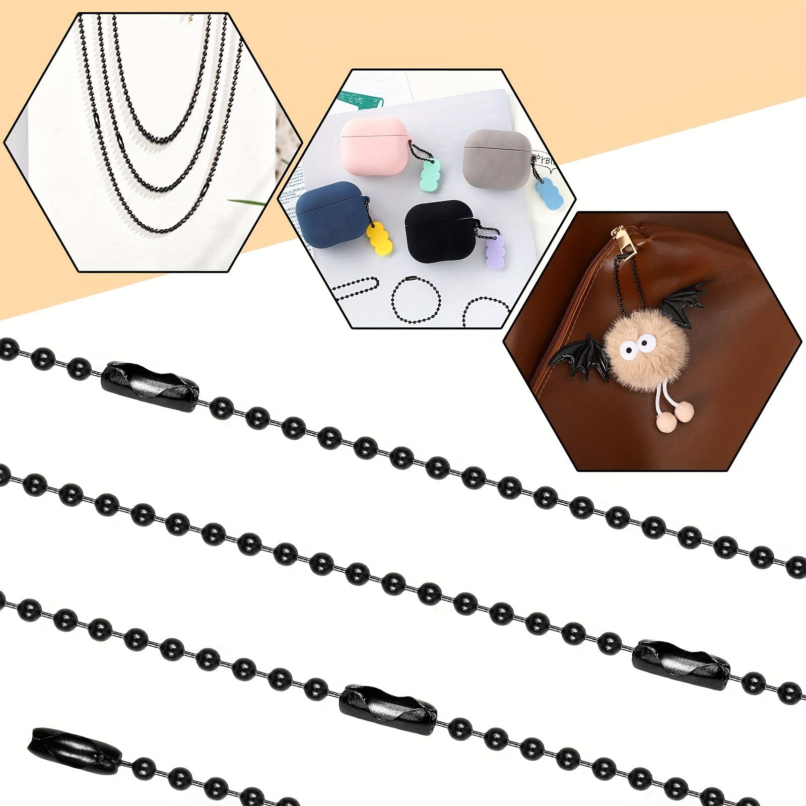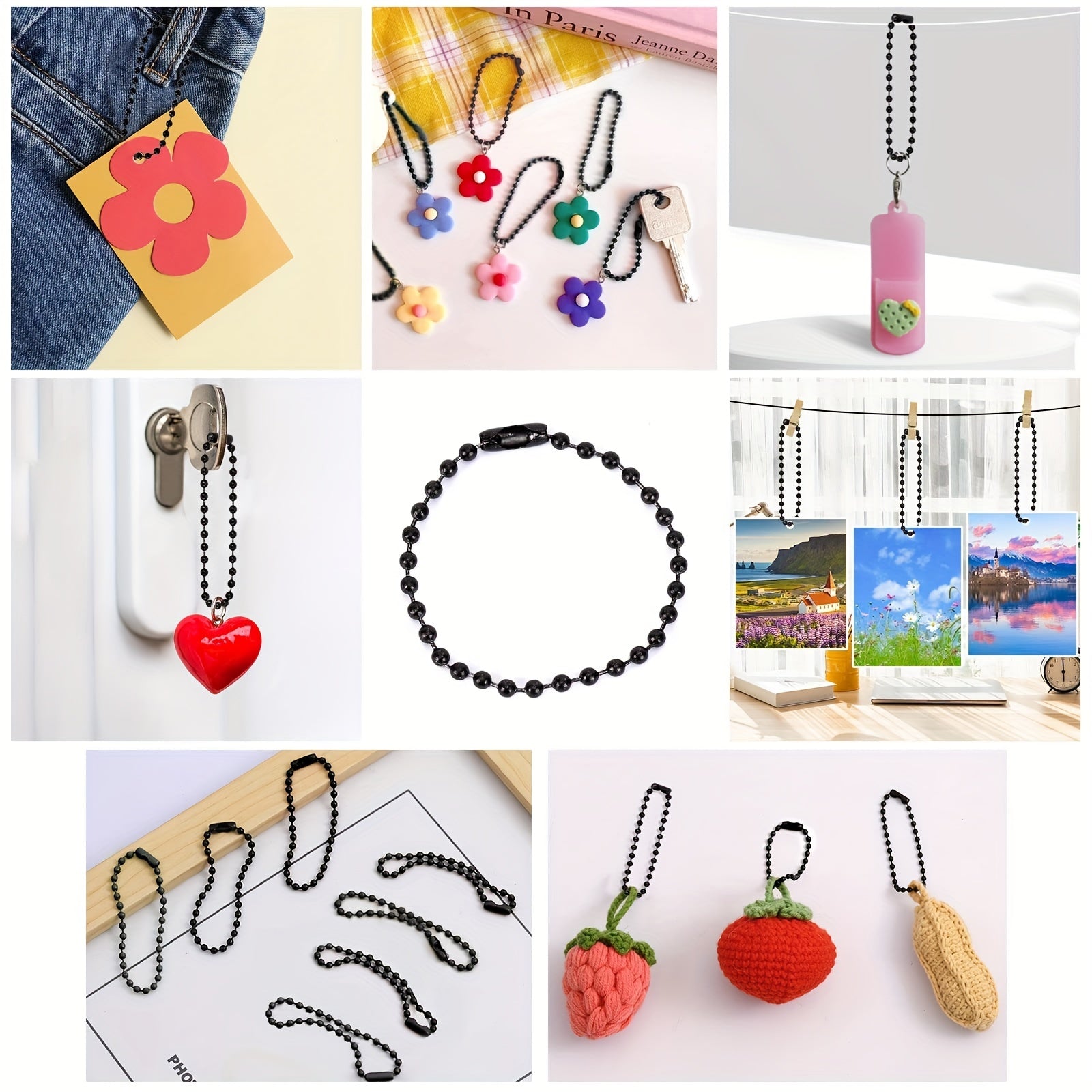 These stainless steel ball bead chains are 4.72in long with a bead connector clasp. They are perfect for tag keychains, key rings, and more.