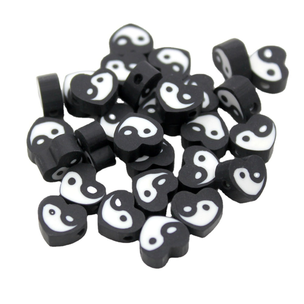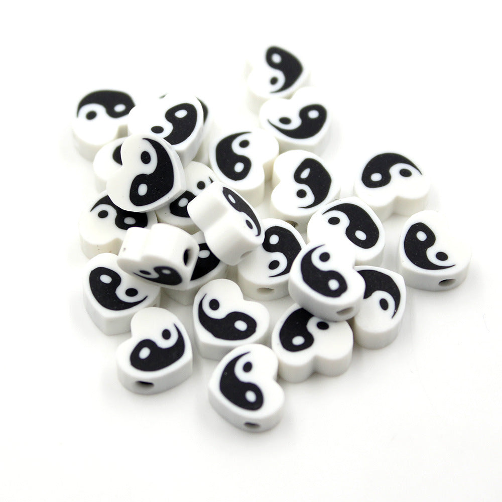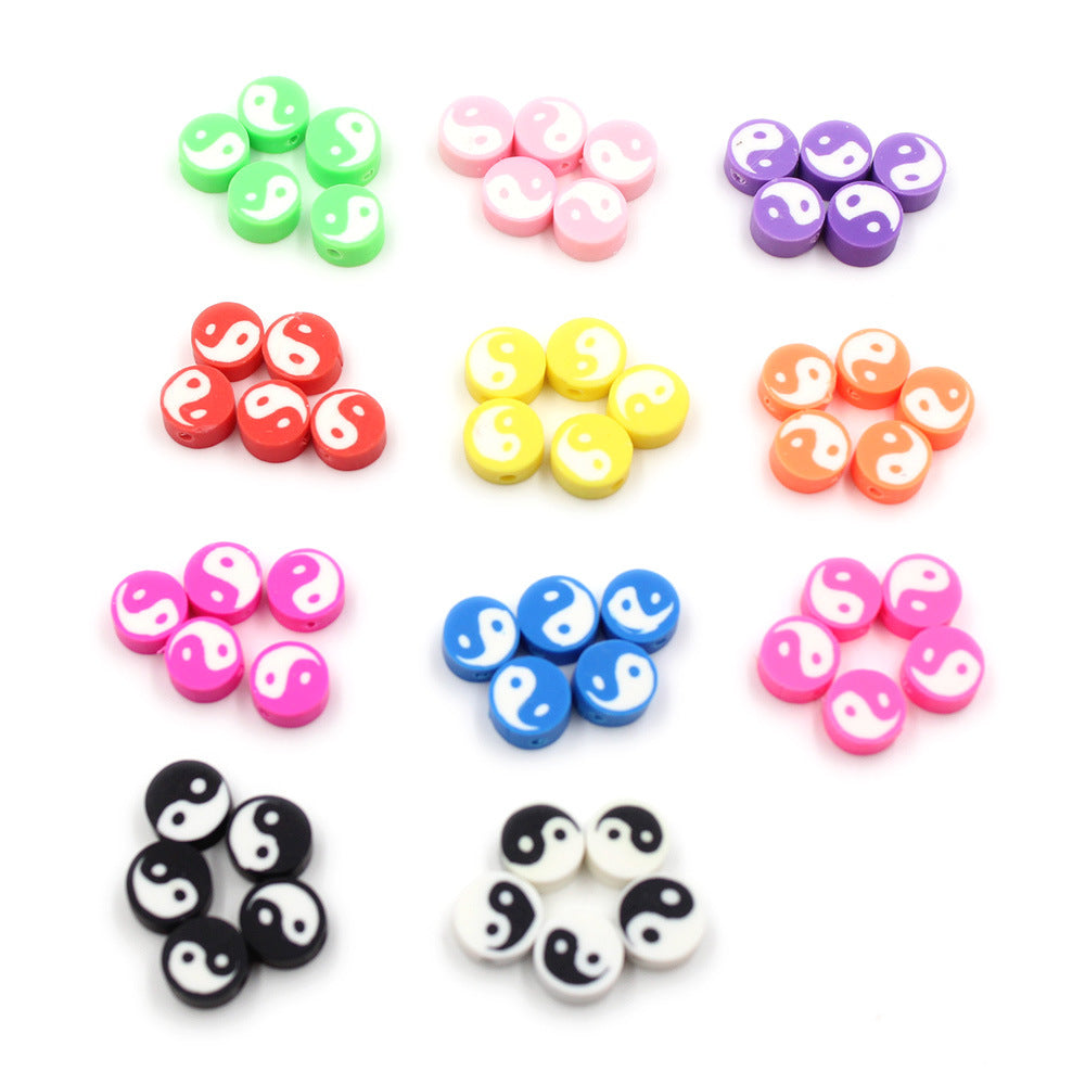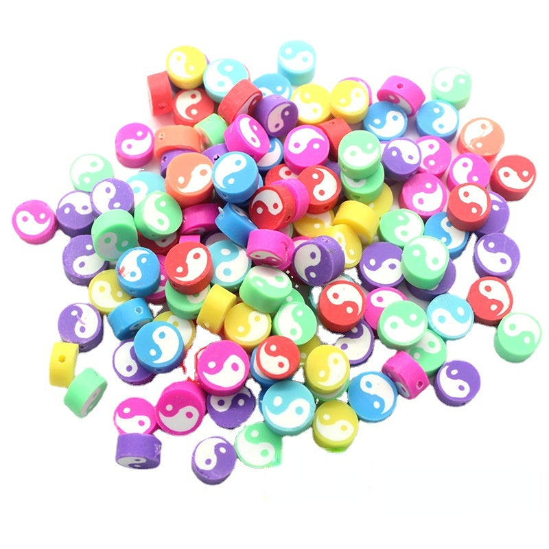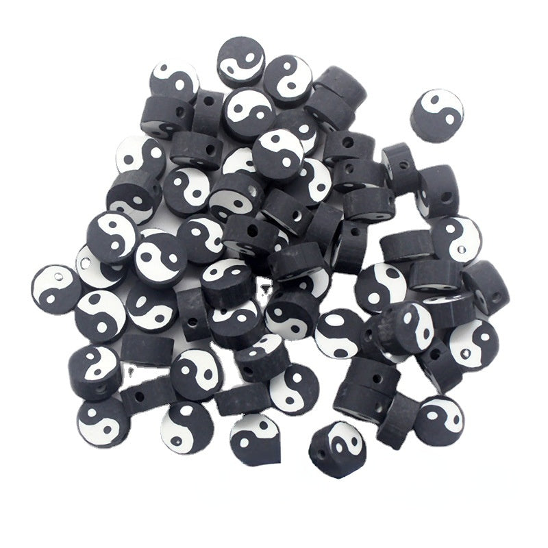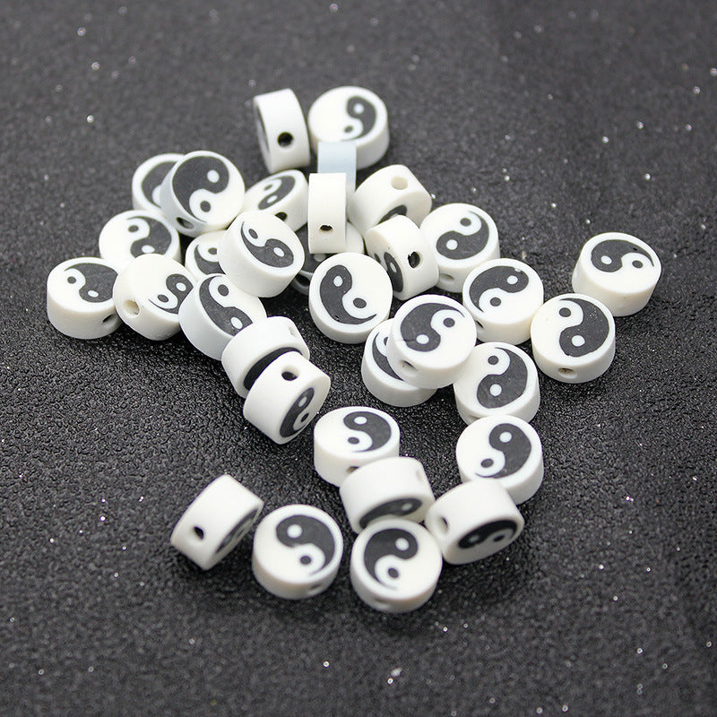 This bag of 100 Tai Chi polymer clay beads is perfect for DIY projects. Use them to create mobile phone chains, bracelets, or other accessories. The beads feature a Yin Yang and Eight Gossips design.