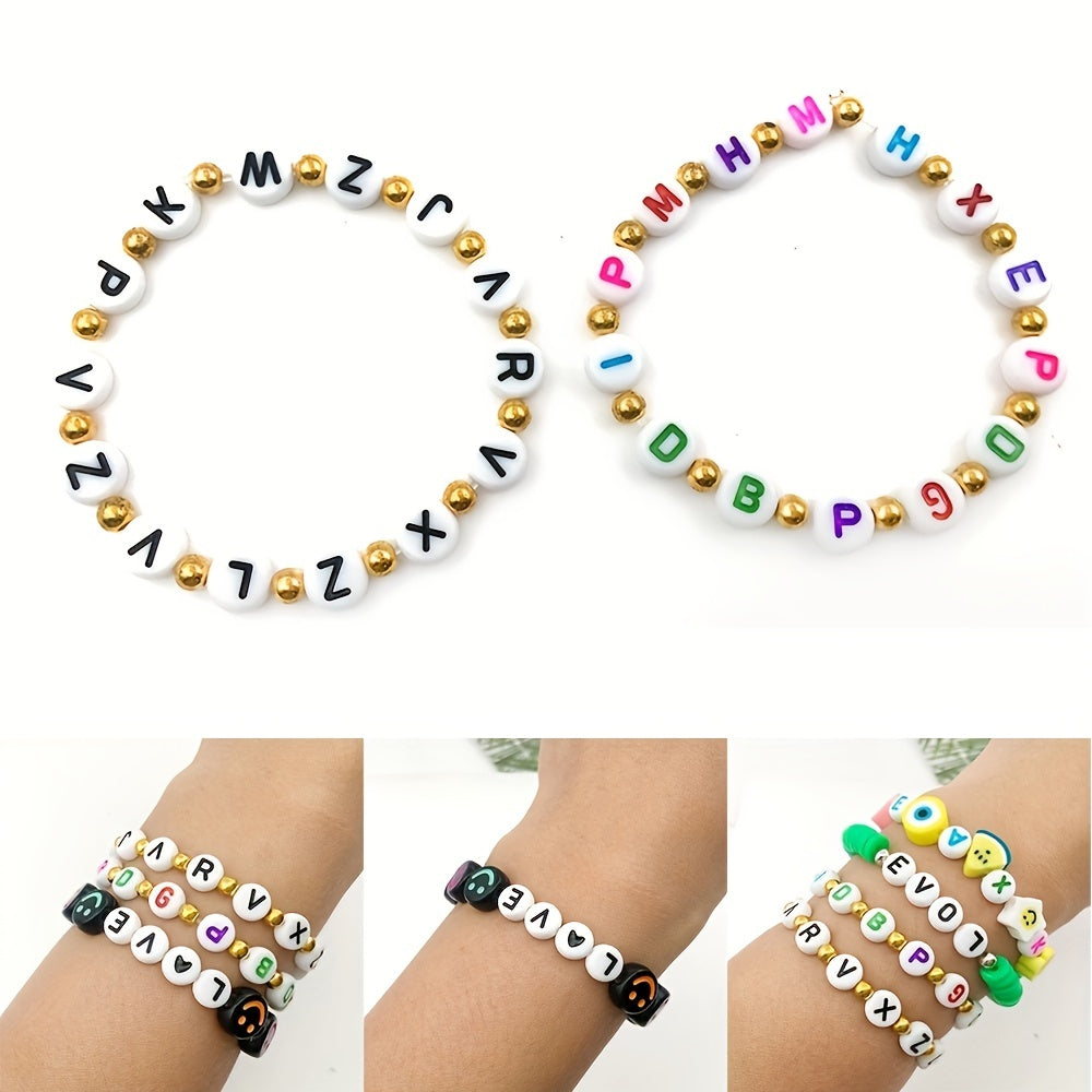 Create personalized jewelry with this set of 104 high round square letter beads and colorful beads. Perfect for making necklaces and bracelets.
