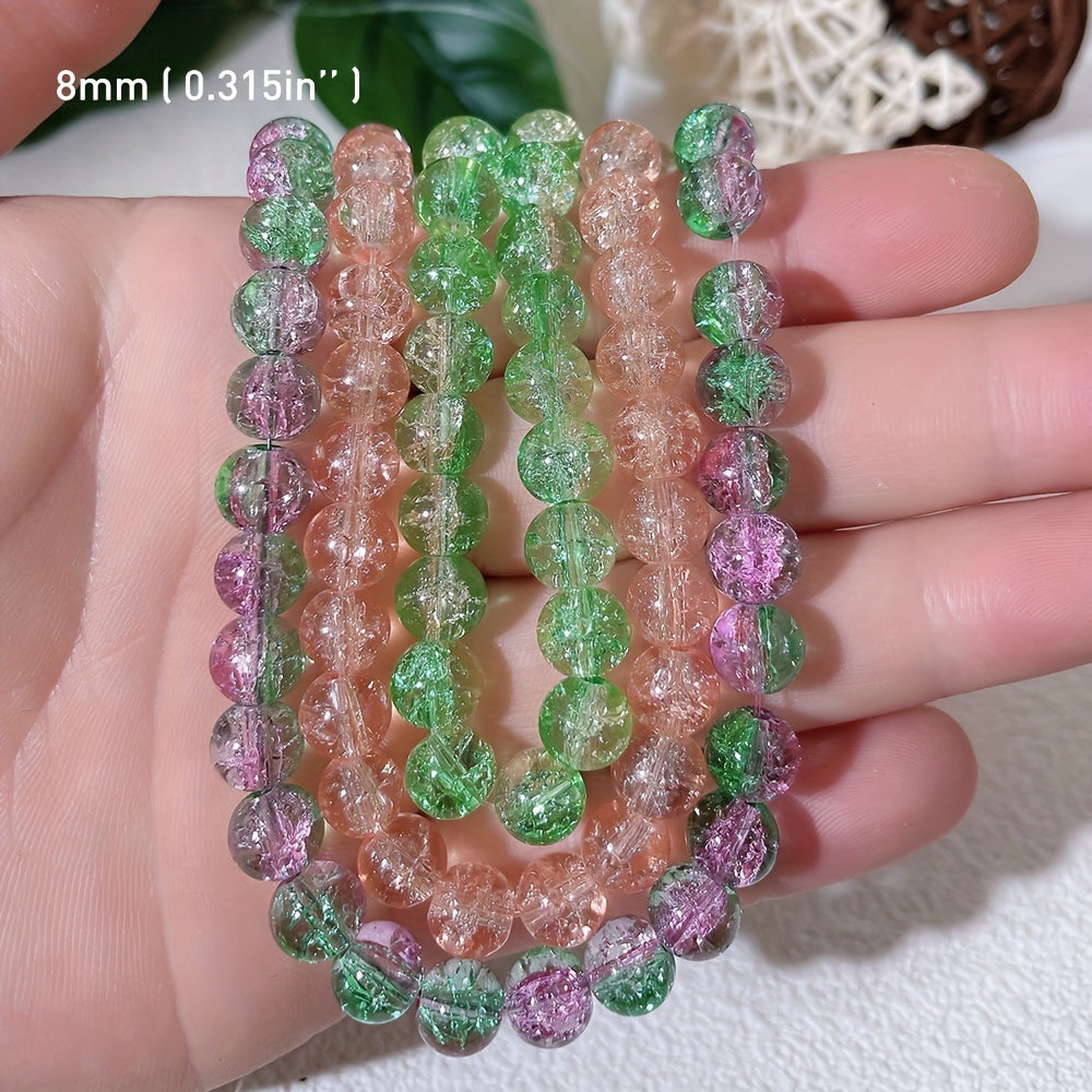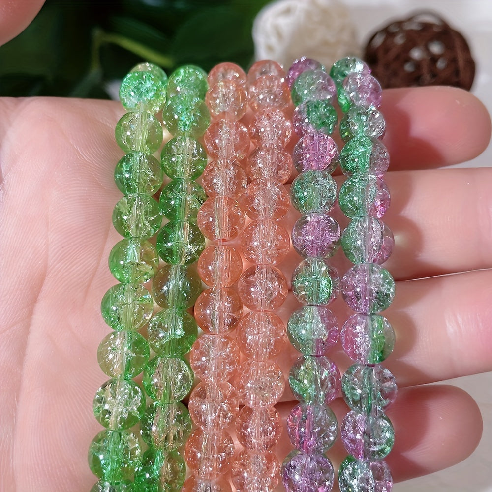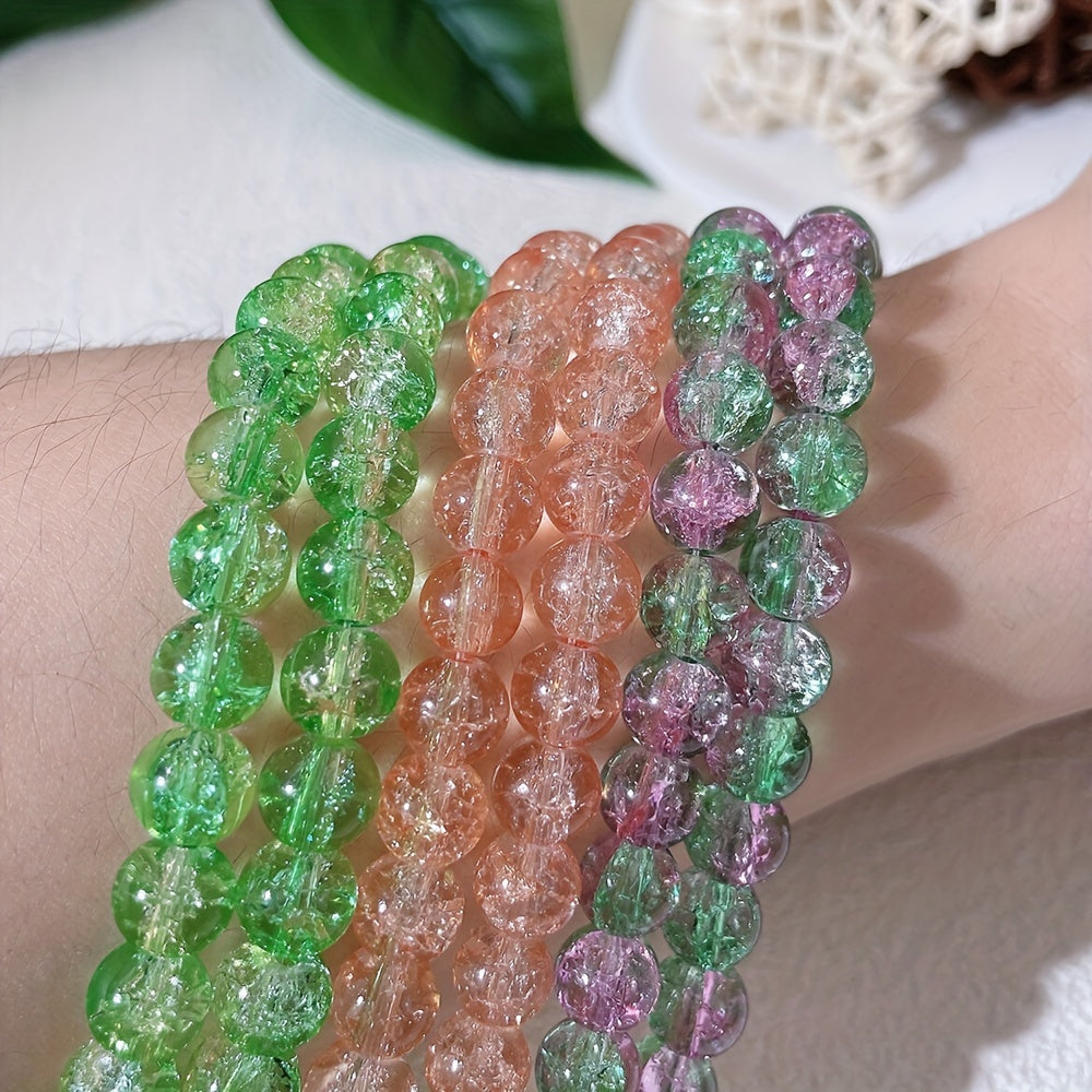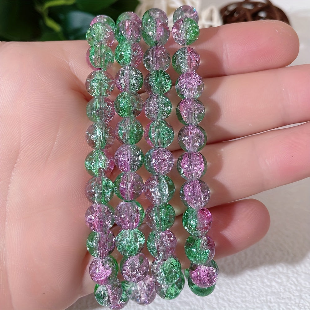 Enhance your bracelet and earring designs with this set of 105 pink round crackle glass beads. Perfect for adding a touch of elegance to your jewelry accessories.