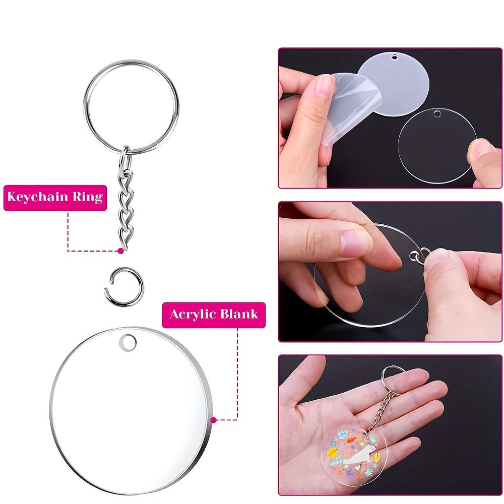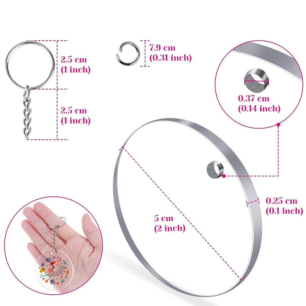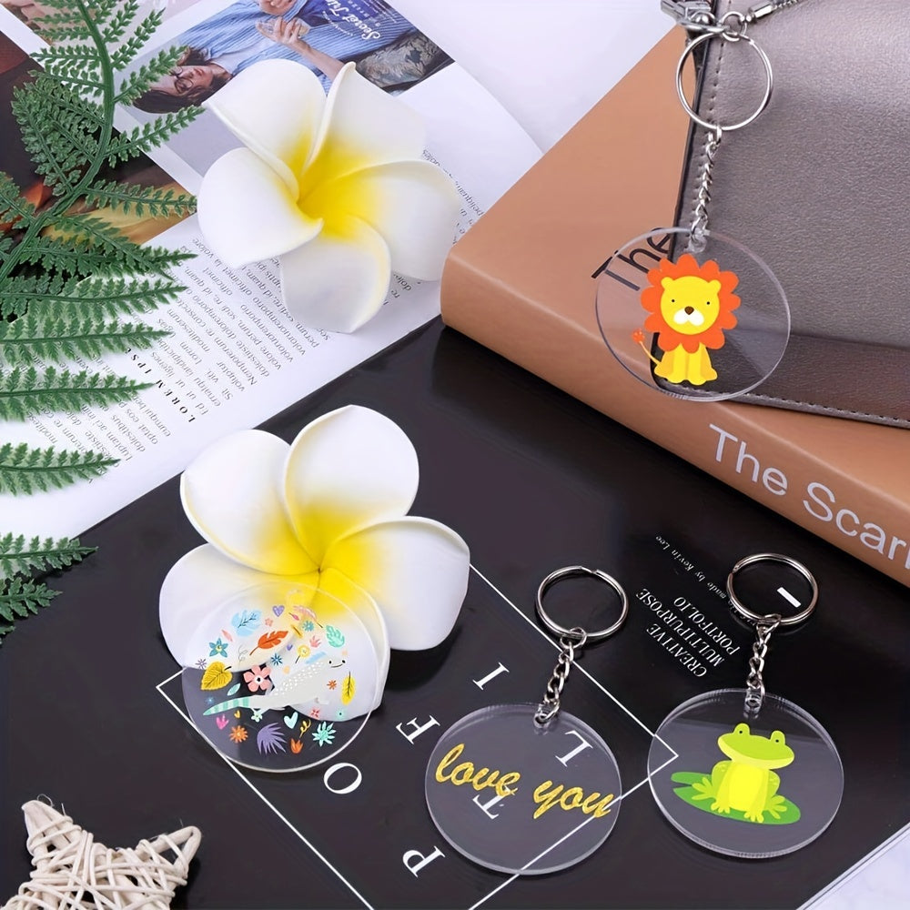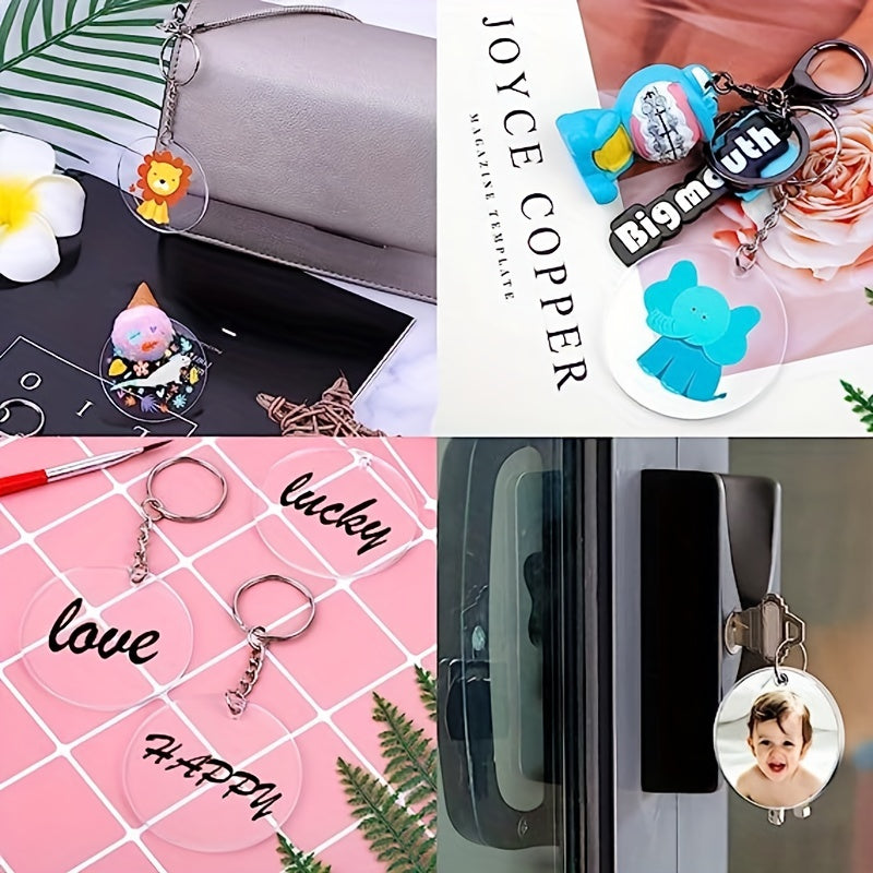 This set includes 36 acrylic blanks, 36 key chains, and 36 lifting rings, perfect for creating custom key chains and jewelry. The transparent vinyl material allows for easy customization.