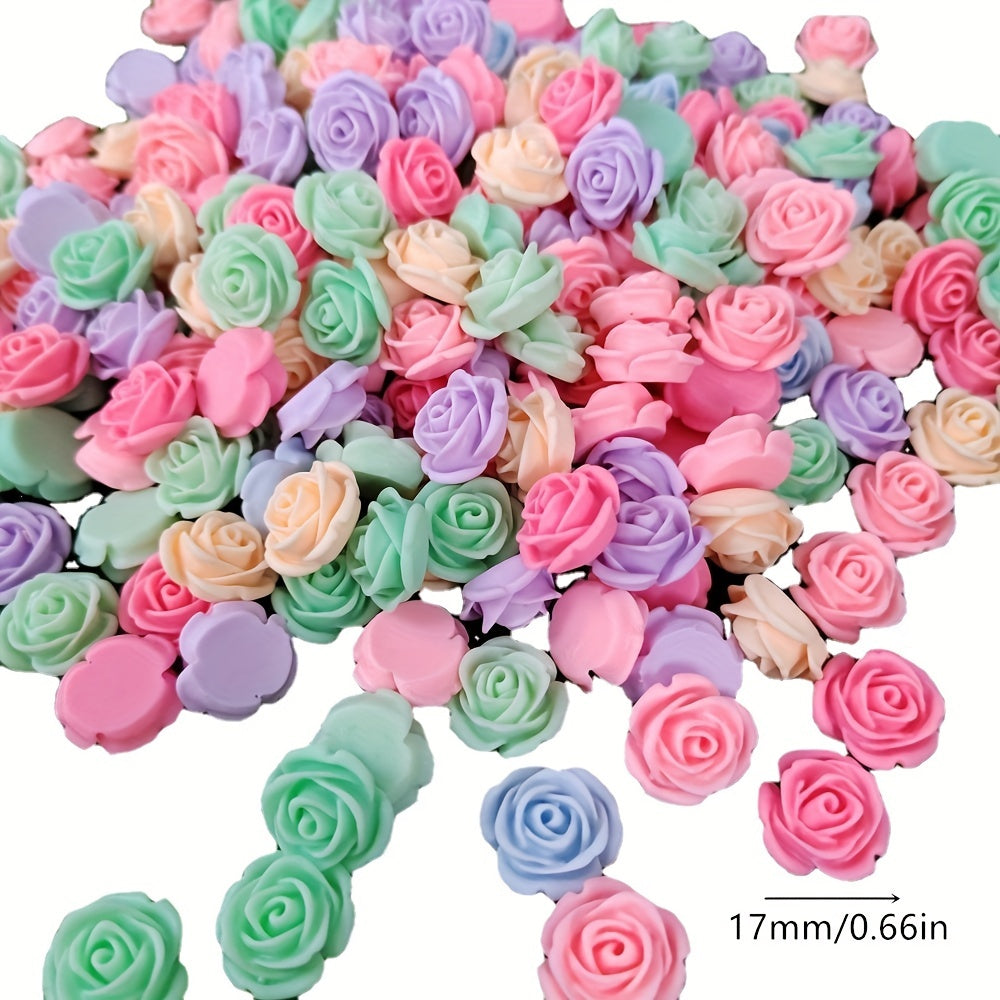 These 10 mini macaroon rose resin pendant beads are perfect for jewelry making, clipbook, nail decoration and hair accessories. Each bead measures approximately 0.67 inches in size.