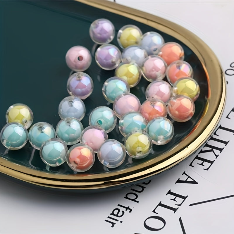These 12mm plated acrylic inner round beads are perfect for creating bracelets, necklaces, mobile phone chains, key chains, and other jewelry accessories. Use them as spacer beads in your designs.