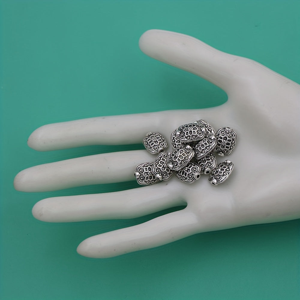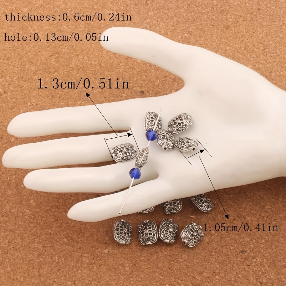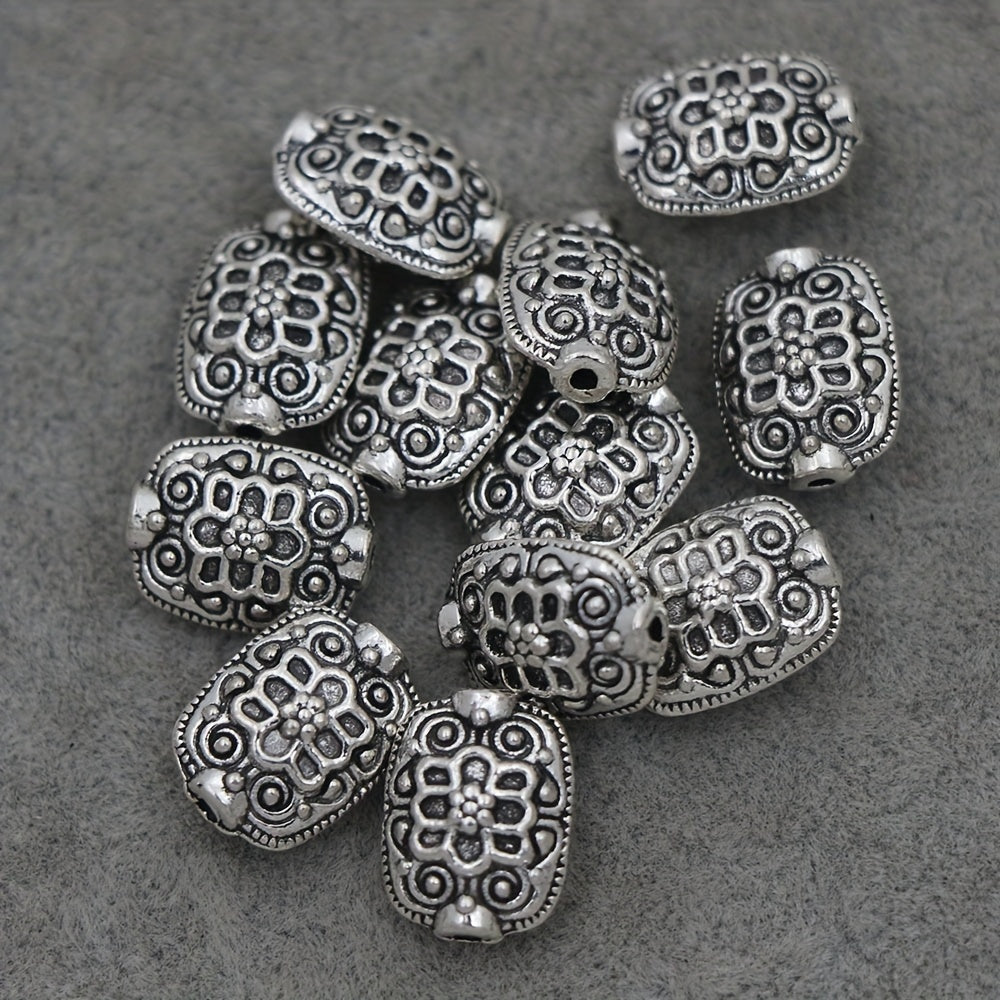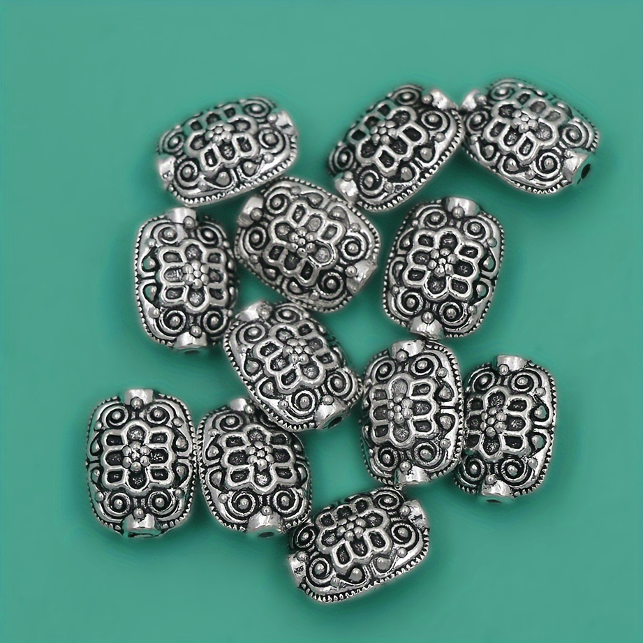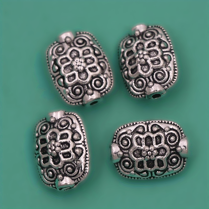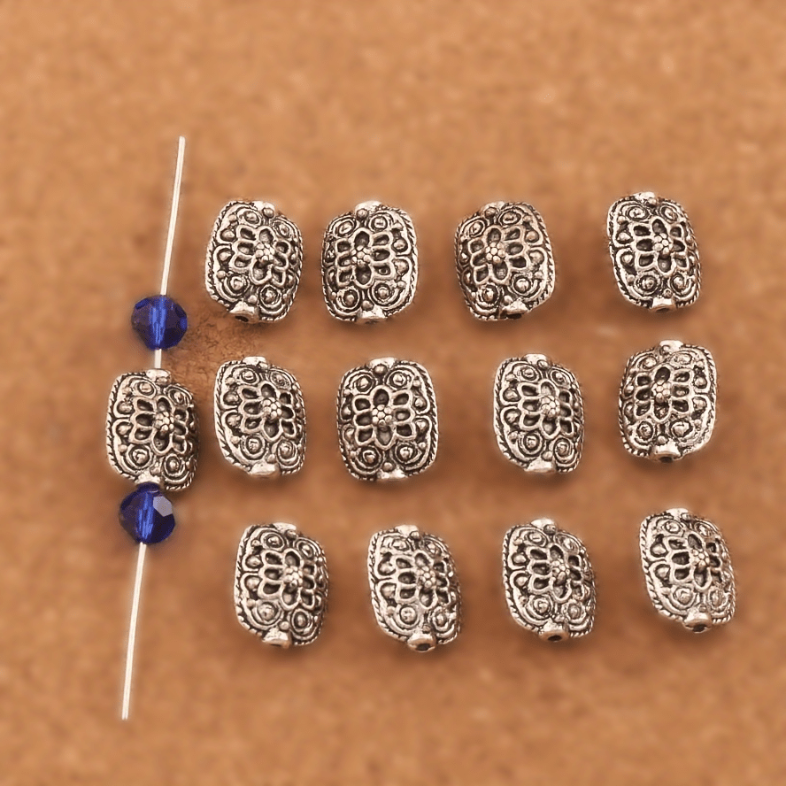 Add a touch of elegance to your jewelry designs with these antique silvery filigree flat beads. Perfect for bracelets, rosaries, beaded necklaces, and earrings.