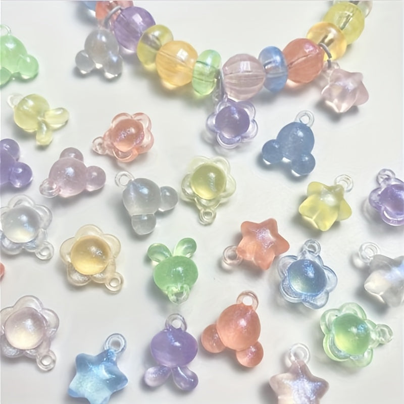 Create stunning jewelry with these 21mm thin glitter powder beads featuring mermaid, rabbit, pentagram designs. Perfect for bracelets, necklaces, phone chains, and more.