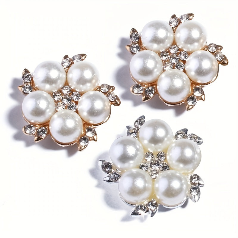 Enhance your handwork projects with these dazzling 22mm flatback buttons featuring rhinestones and faux pearl decorations. Ideal for sewing and DIY crafts.
