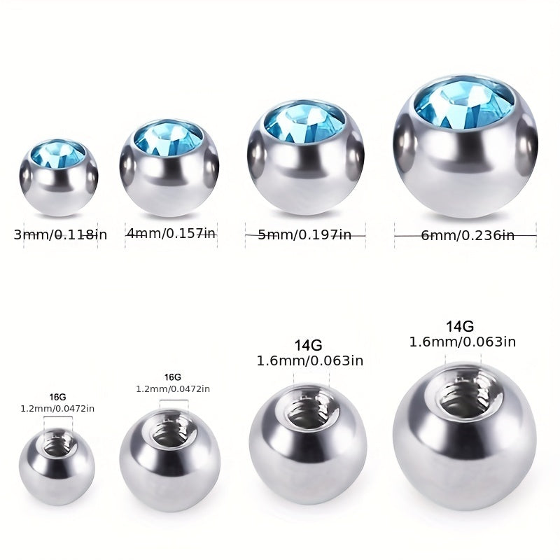 10pcs 3-6mm 14-16G Colorful Stainless Steel Replacement Balls Piercing Jewelry