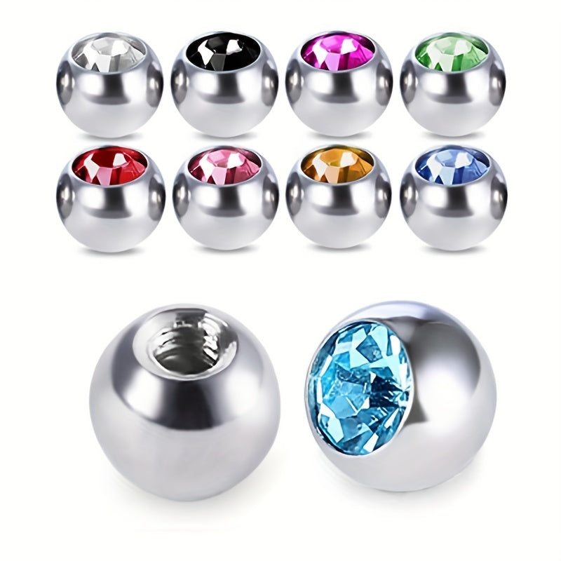 These 10 colorful stainless steel replacement balls are perfect for DIY eyebrow, belly, and more. Available in different sizes and colors to match your style.