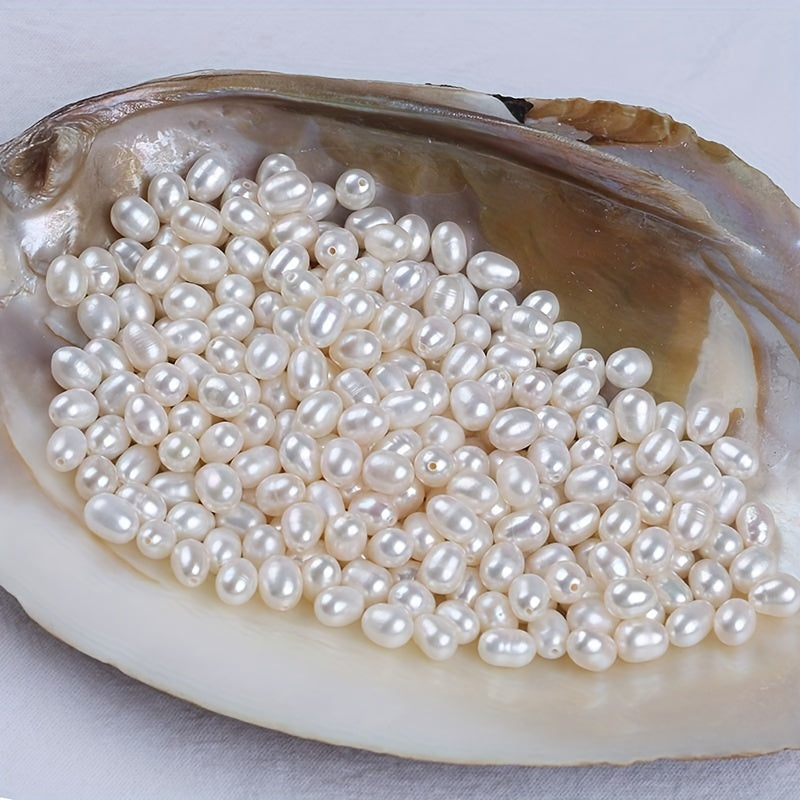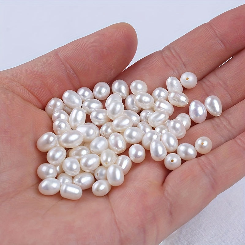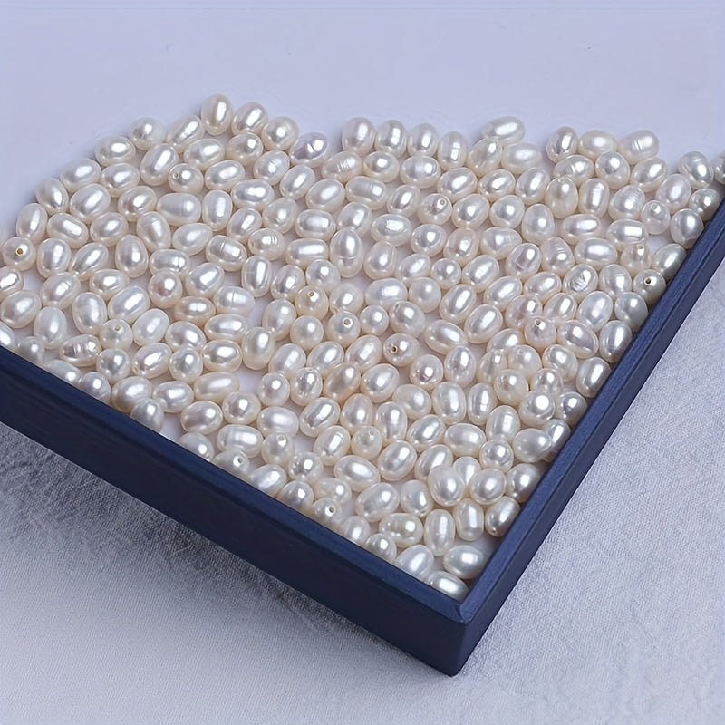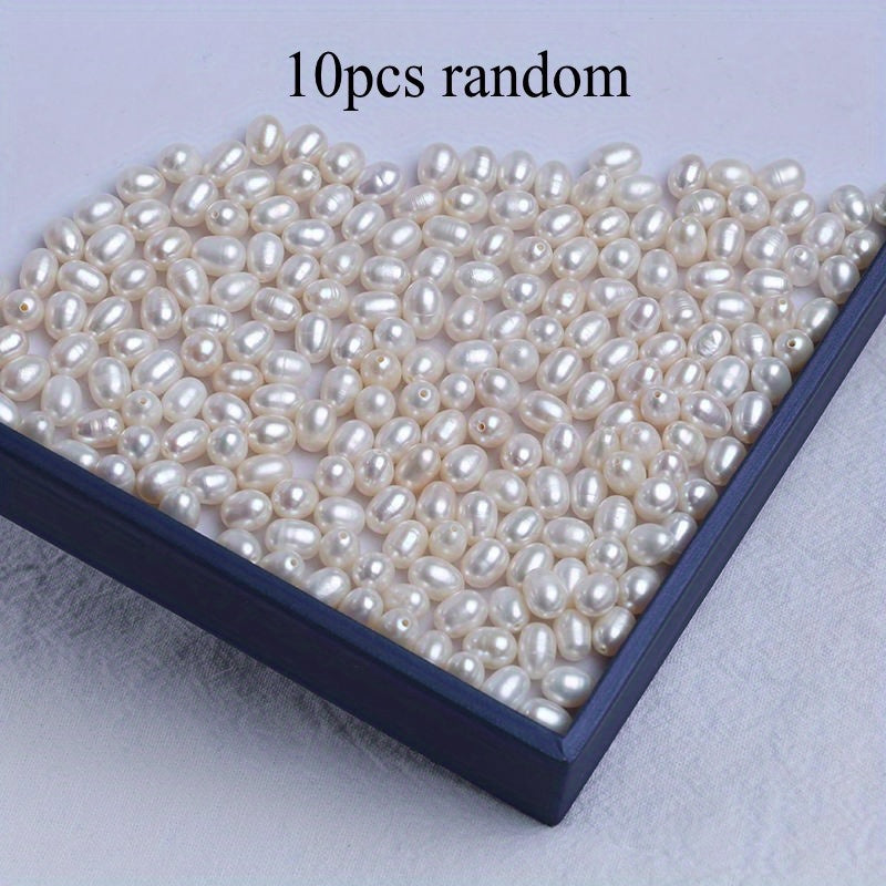 Get a set of 10 natural freshwater pearls with holes for your DIY projects. These semi-finished rice-shaped pearls are perfect for crafting unique jewelry pieces.